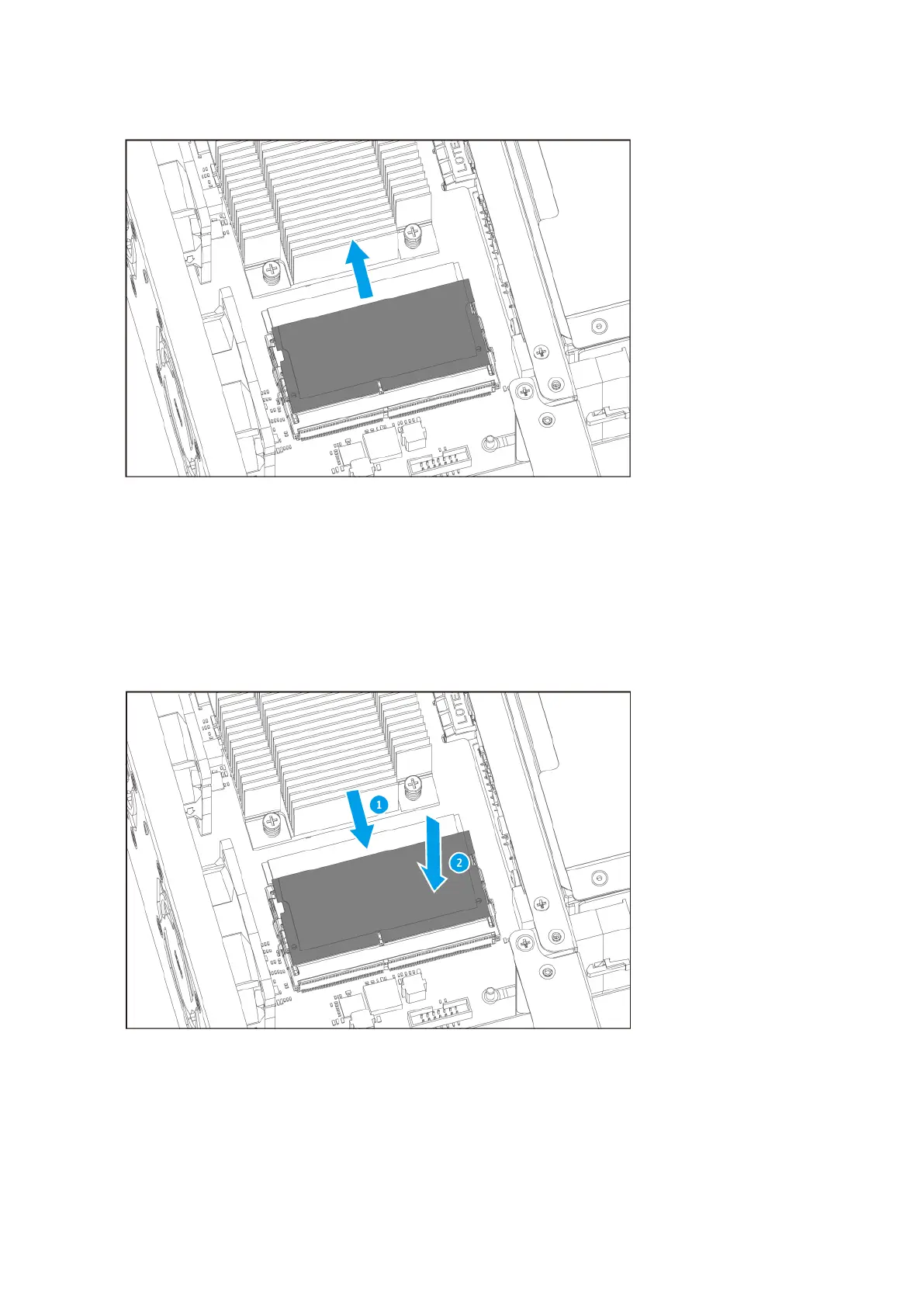 d. Carefully press down on the module until the retention clips lock the module into place.