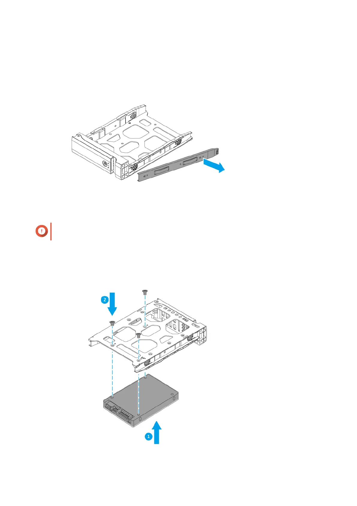 Firma QNAP zaleca przymocowanie kieszeni dysków wkrętami na czas transportu.