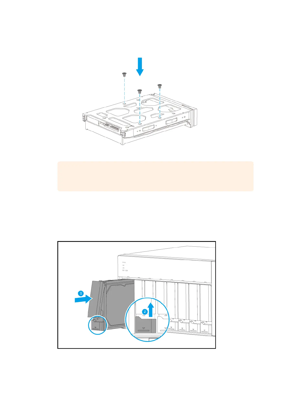 d. Optional: Attach the screws to further secure the drive.