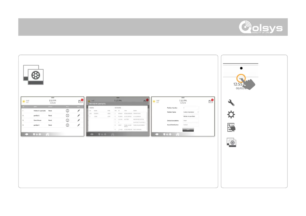 Edit the default name of a partition and view a list of users and sensors that