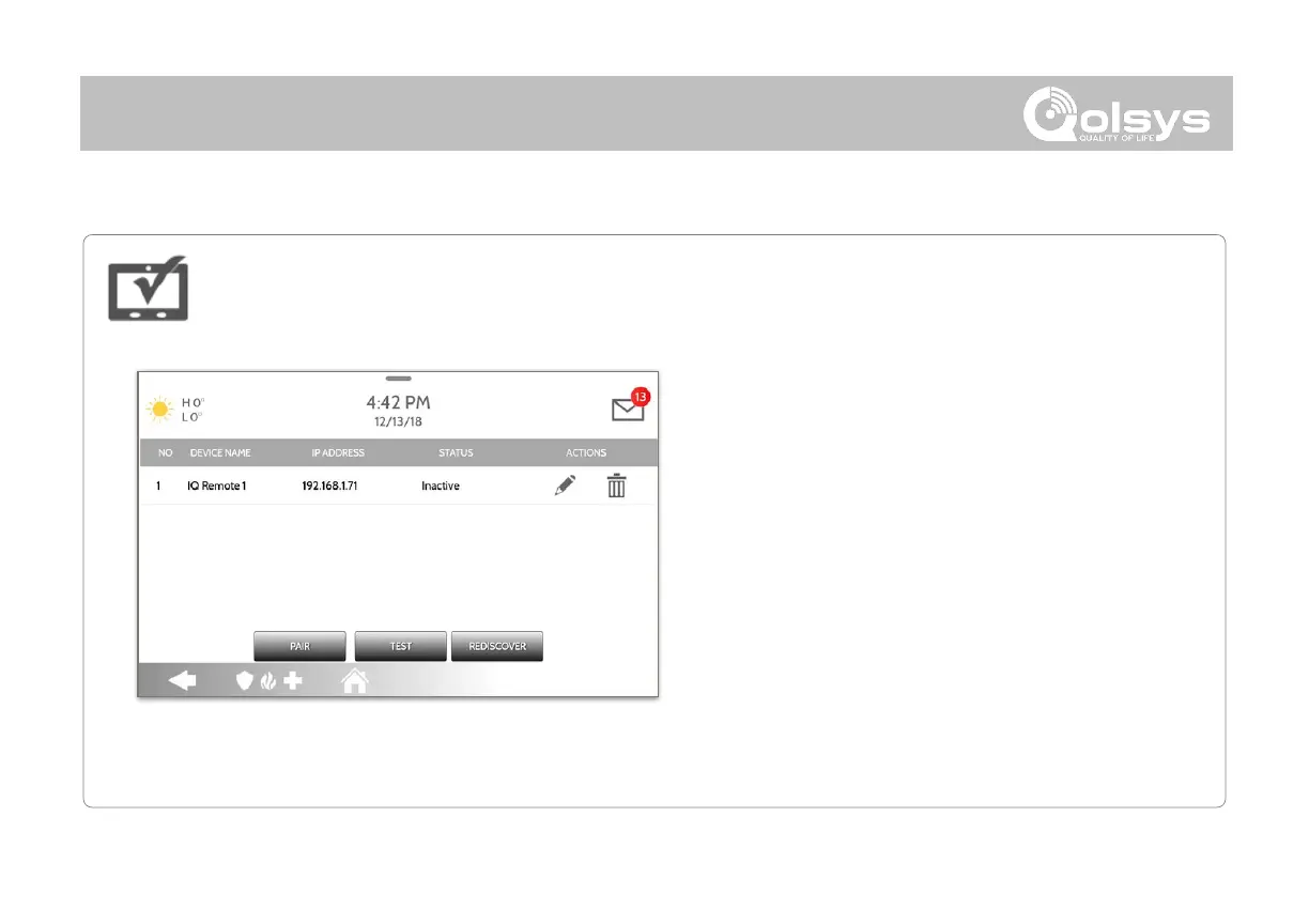 NOTE: The IQ Remote will automatically pair as Sensor Type “Keypad” and will