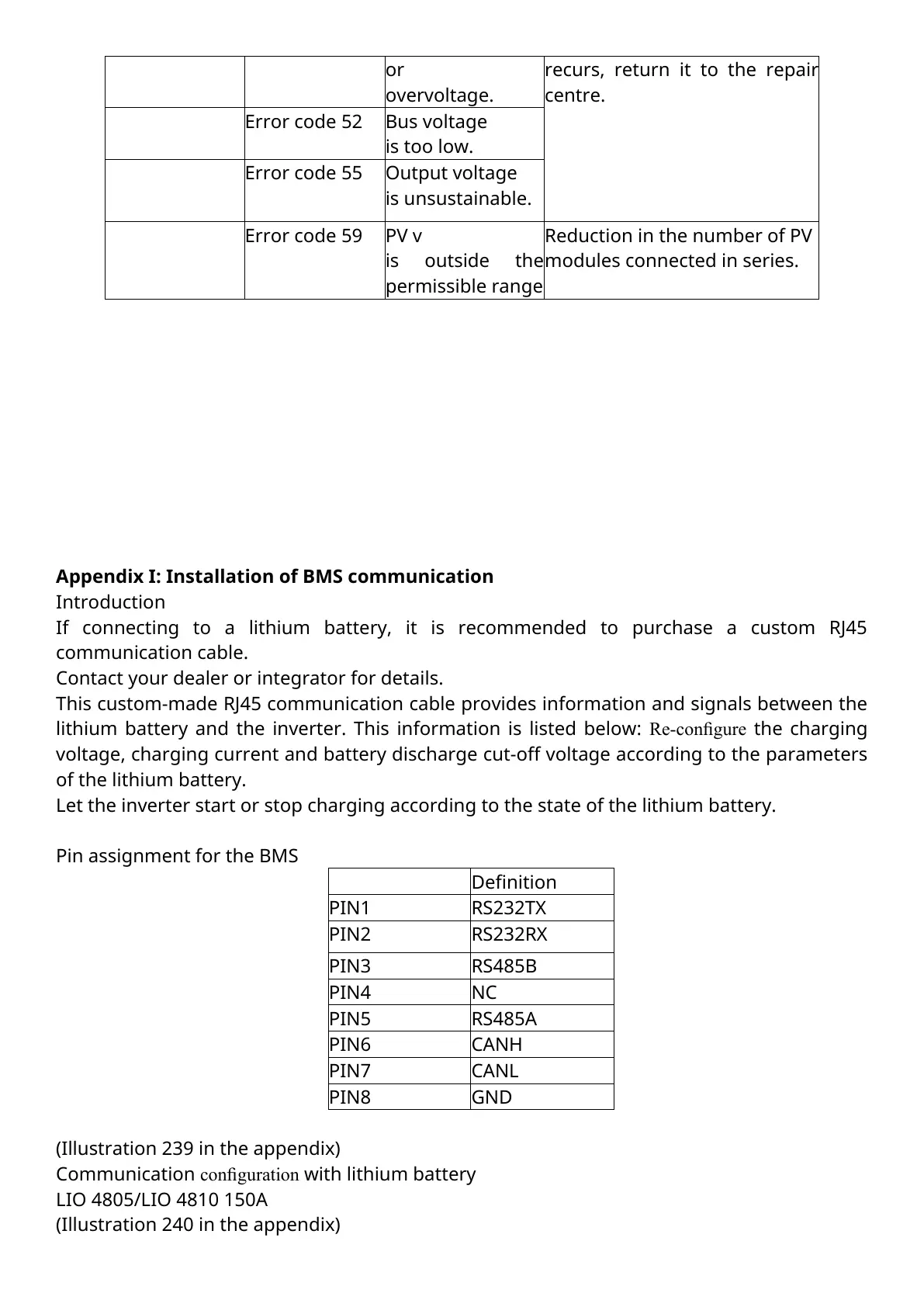 Appendix I: Installation of BMS communication
