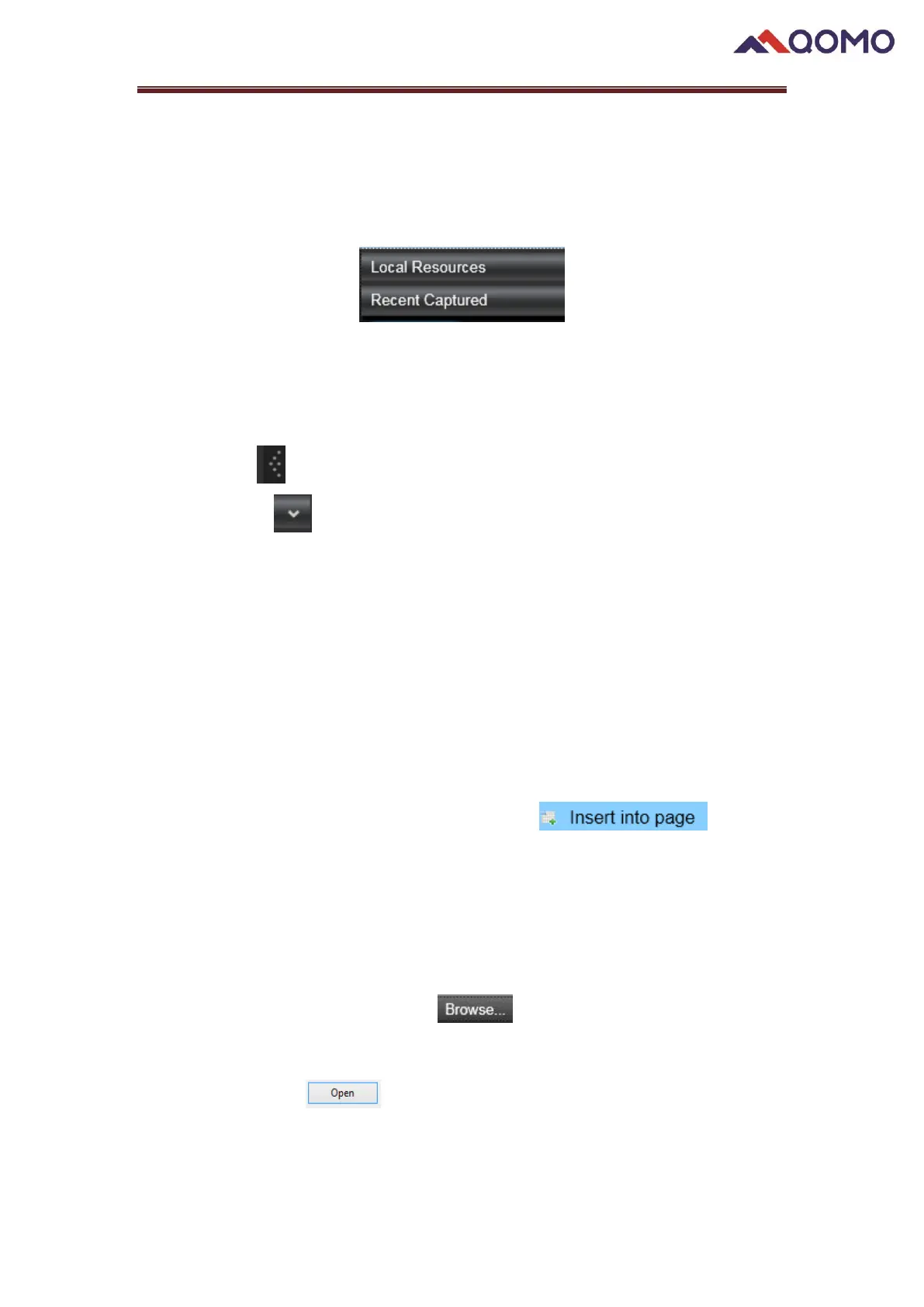 resources. There are three ways to insert the resource on camera display area.