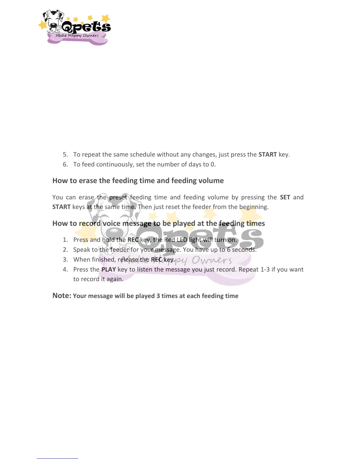 Note: Your message will be played 3 times at each feeding time