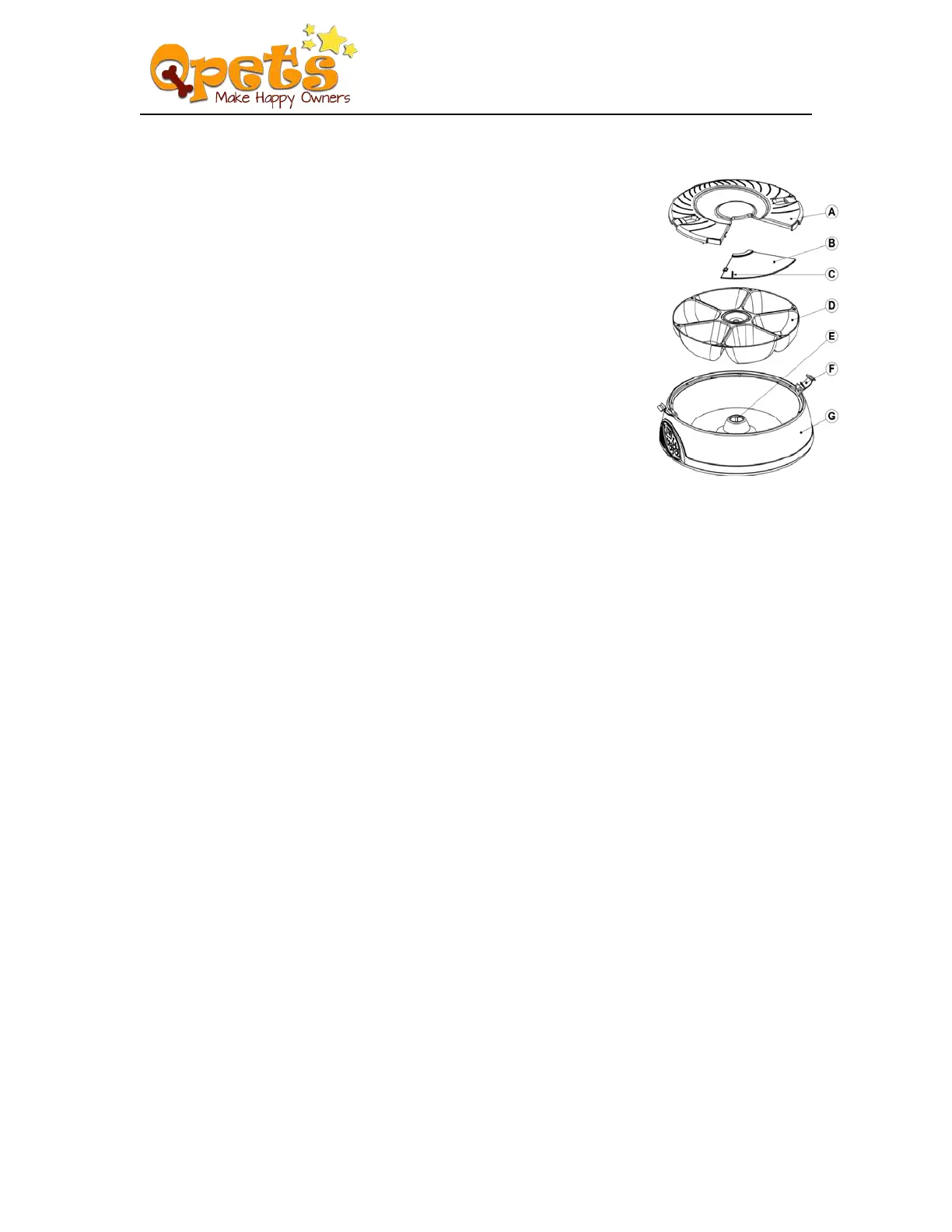 2. Add food to the FEEDER TRAY (D) compartments 1-6.
