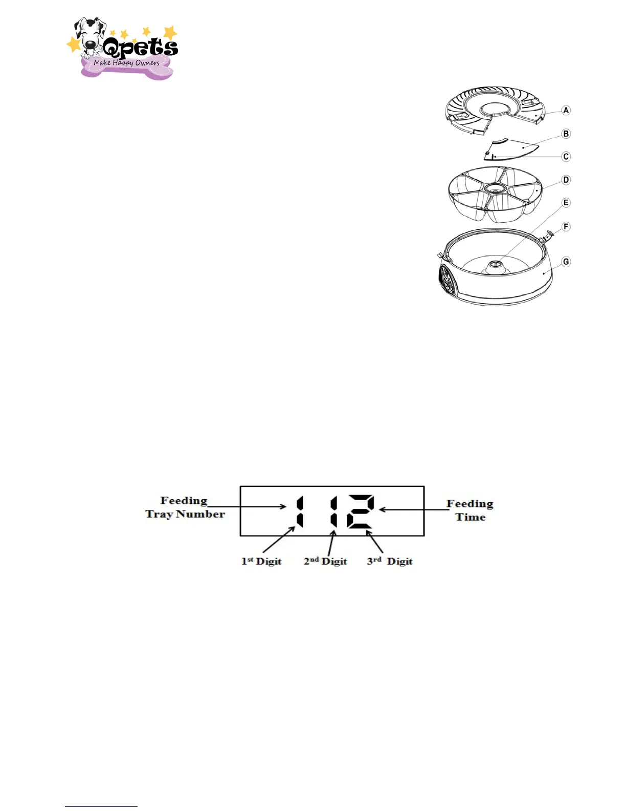 2. Fill your pet food into the FEEDER TRAY (D) (Tray 1 to Tray