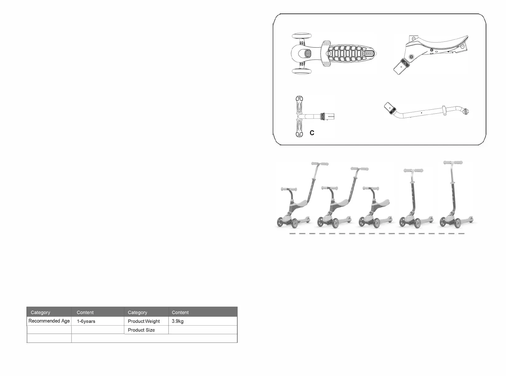 develop their balance and coordination. When the scooter is used in Push mode (stage 1 & 2), please lock the steering system.