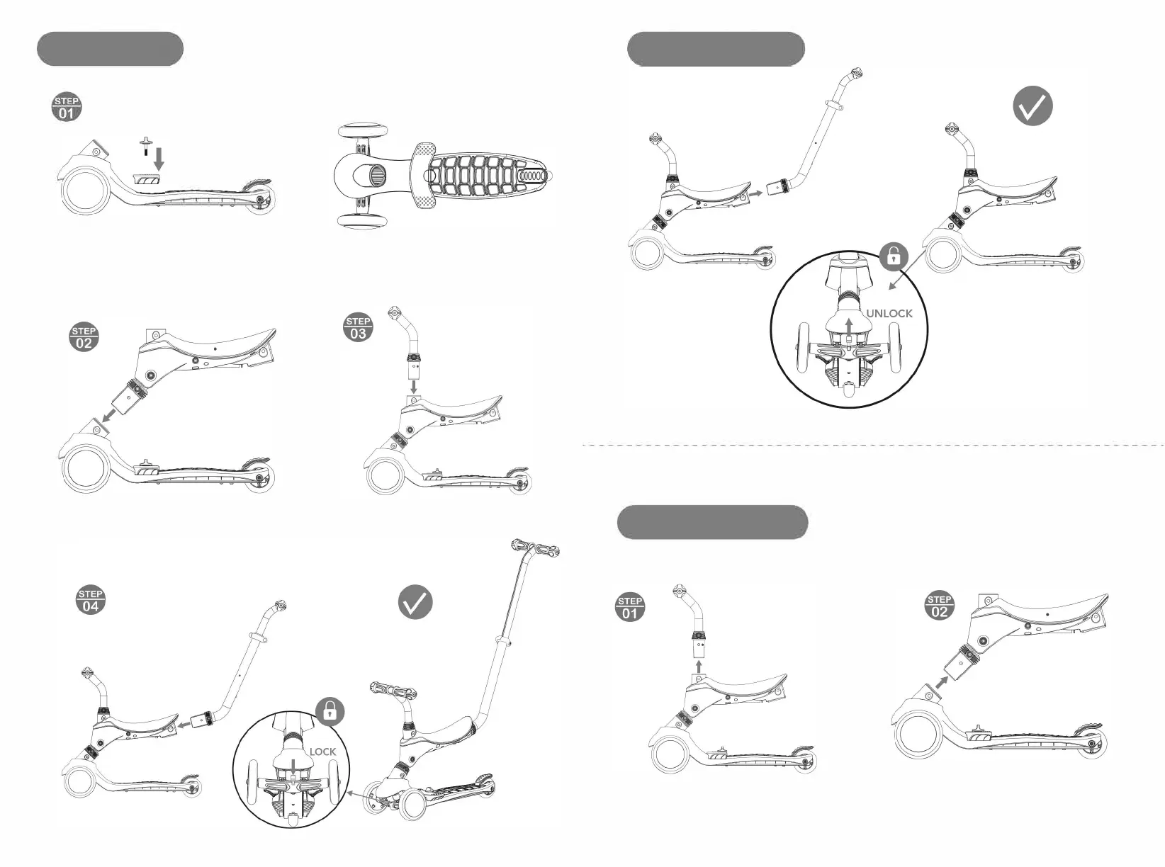 QPlay SEMA - Push Mode Operation; Step 1: Prepare for Push Mode; Step 2: Lock Steering; Ride On Mode Operation