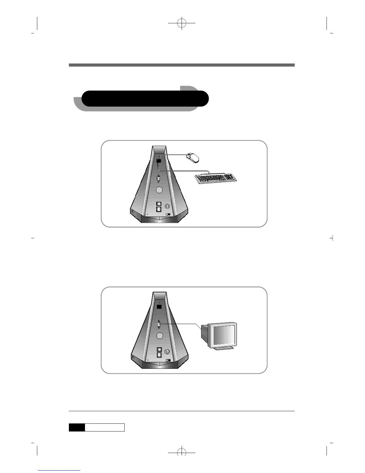• USB Keyboard/Mouse connectors are on the rear panel.