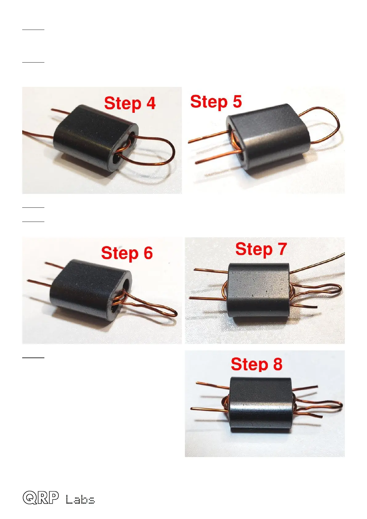 Step 7: Start the 3-turn secondary winding by pushing the wire from right to left through the bottom