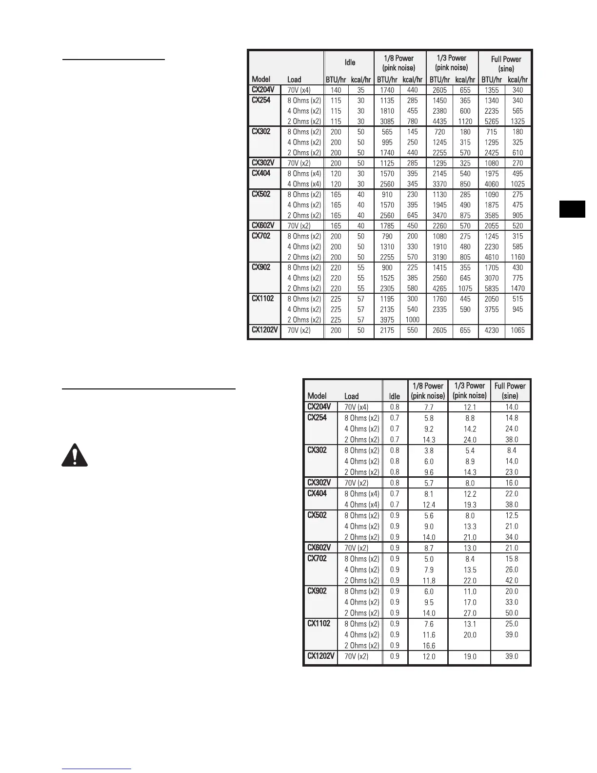 • Full power (sine) is continuous sine wave driven at 1% clipping.