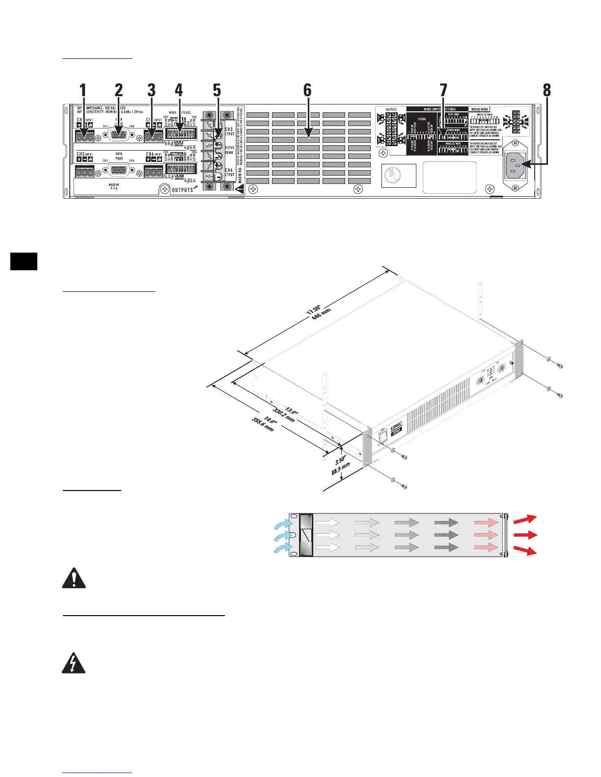 Conecte la CA en el receptáculo IEC que se encuentra en la parte posterior del amplificador. NOTA: Apague el conmutador de CA antes de conectar