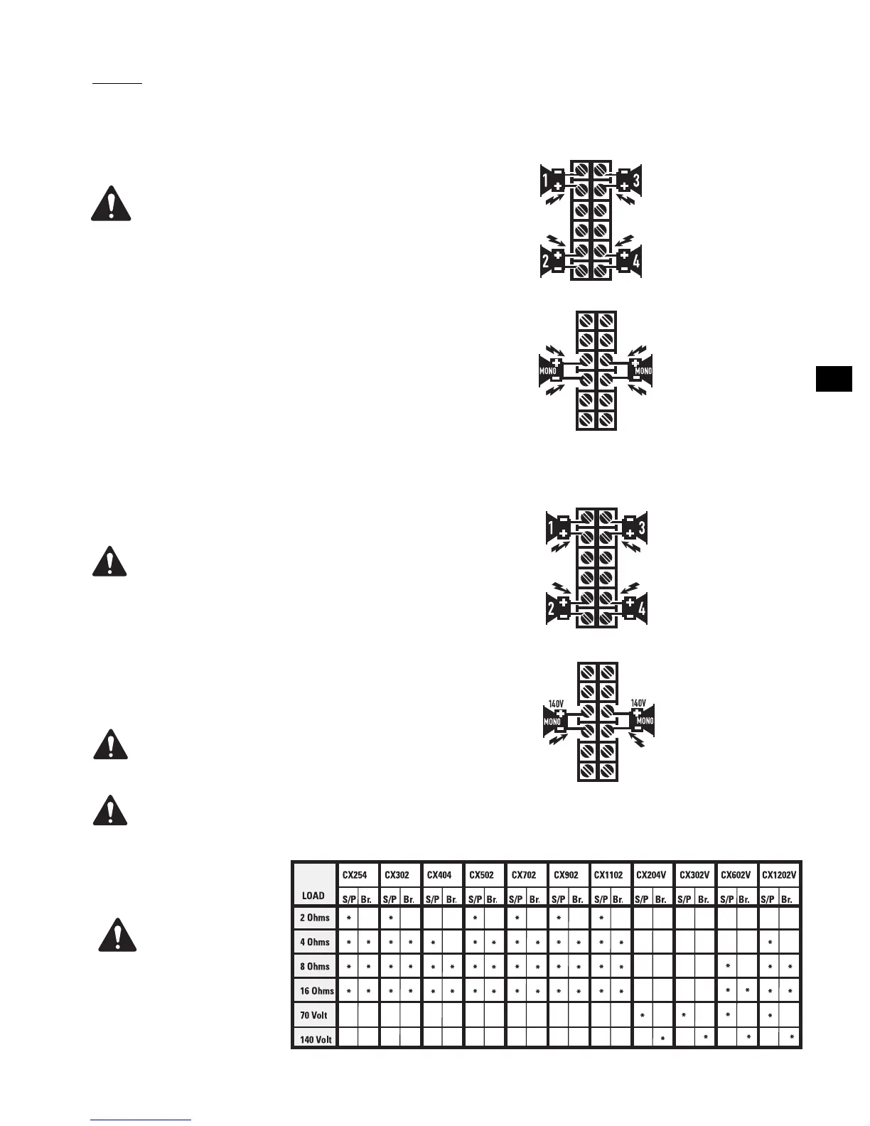 Conecte sólo circuitos de sonido distribuido de 140V en modo puenteado.
