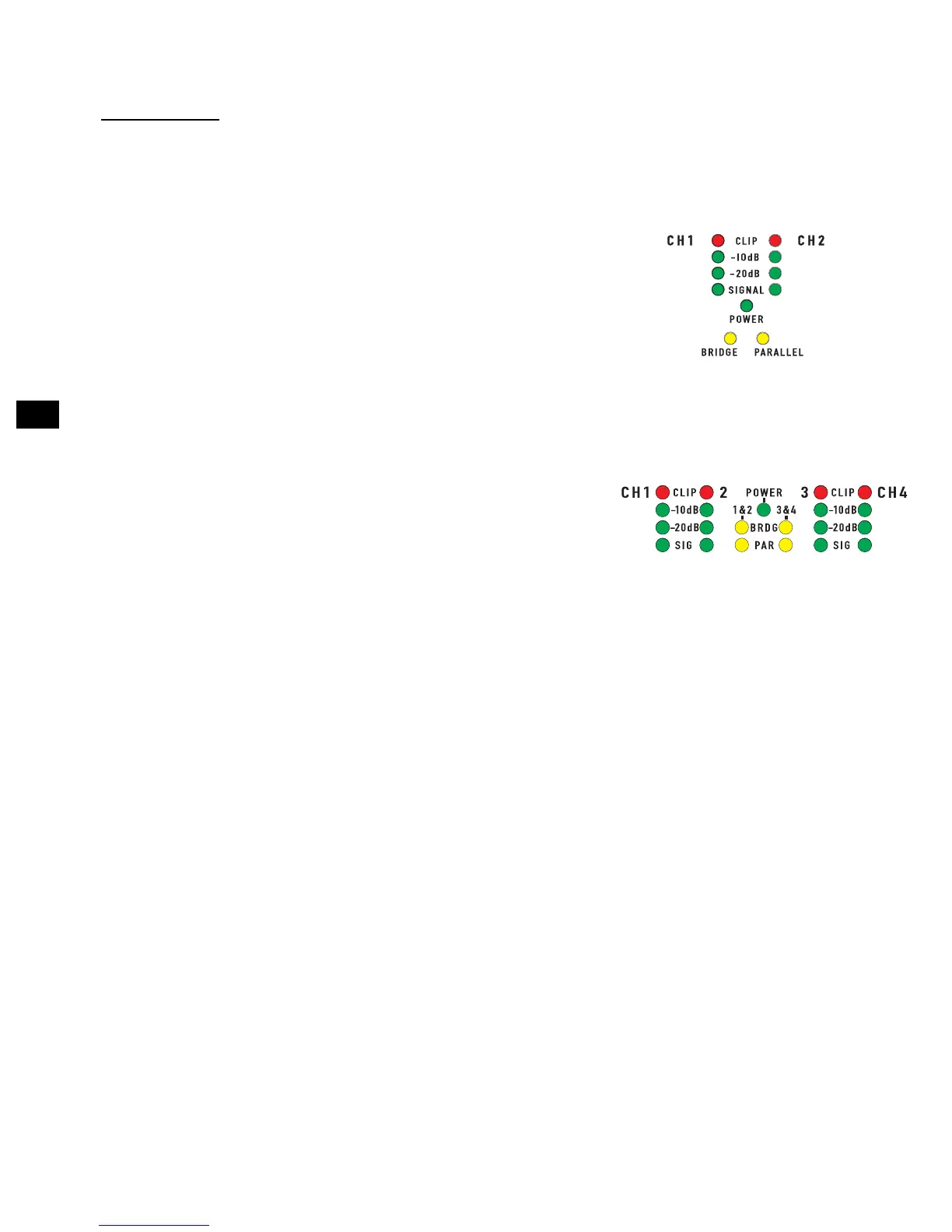 Cada par de canales tiene un LED AMARILLO para el modo de puenteado y un LED
