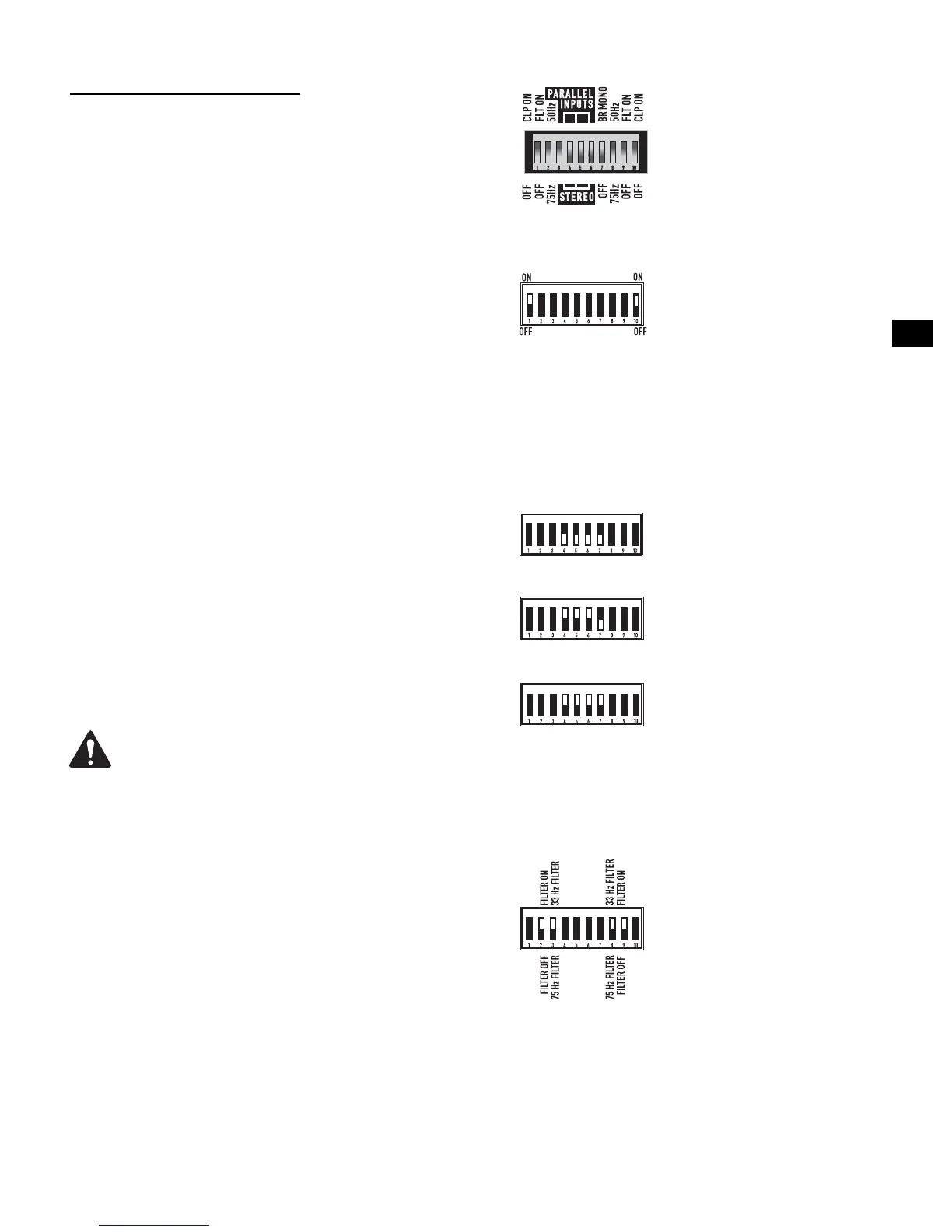 amplifier’s operating mode for Stereo, Parallel, or Bridge operation.
