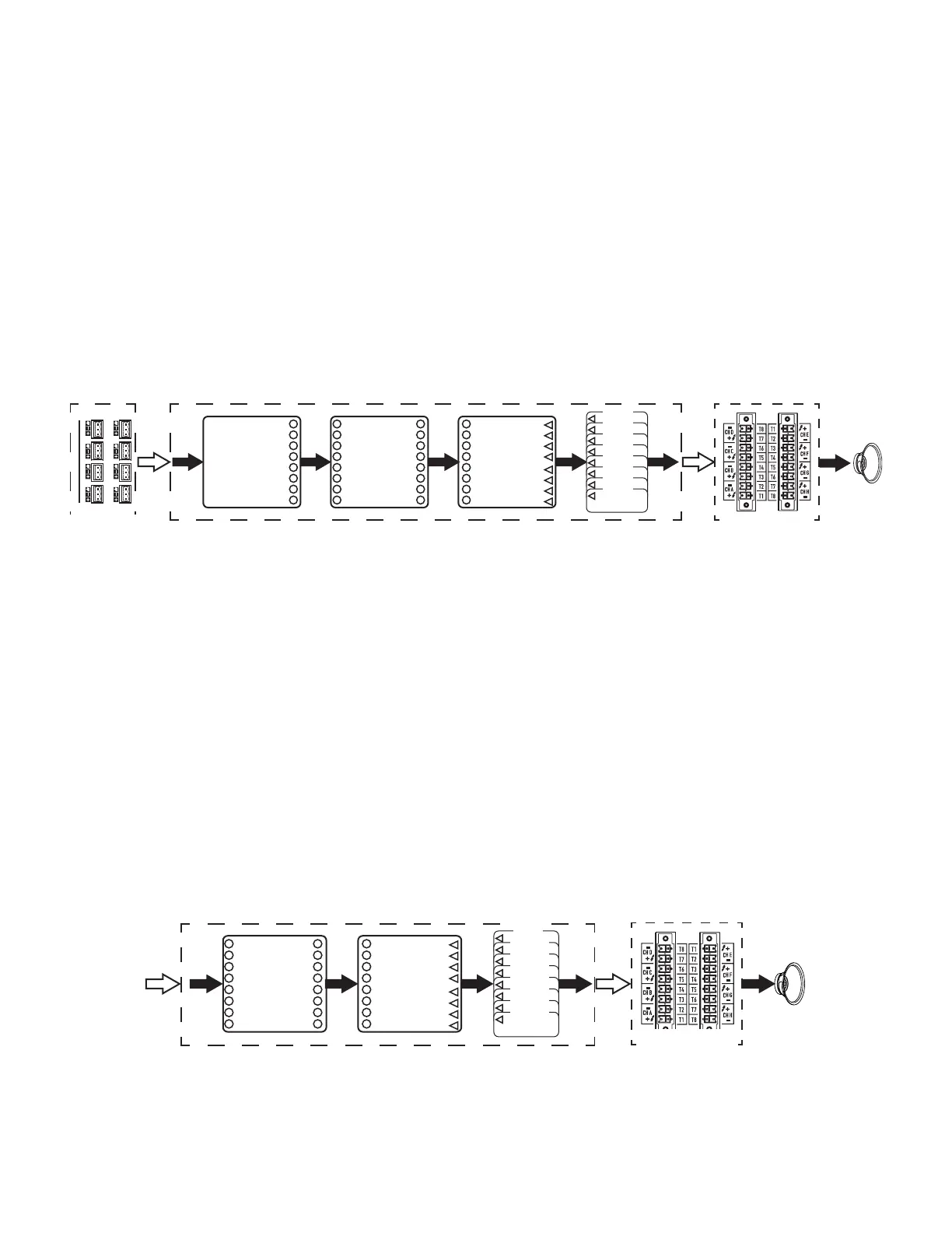 The CX-Qn model amplifiers have no analog inputs. The input signal utilized to drive the amplifier channels must be virtually wired in
