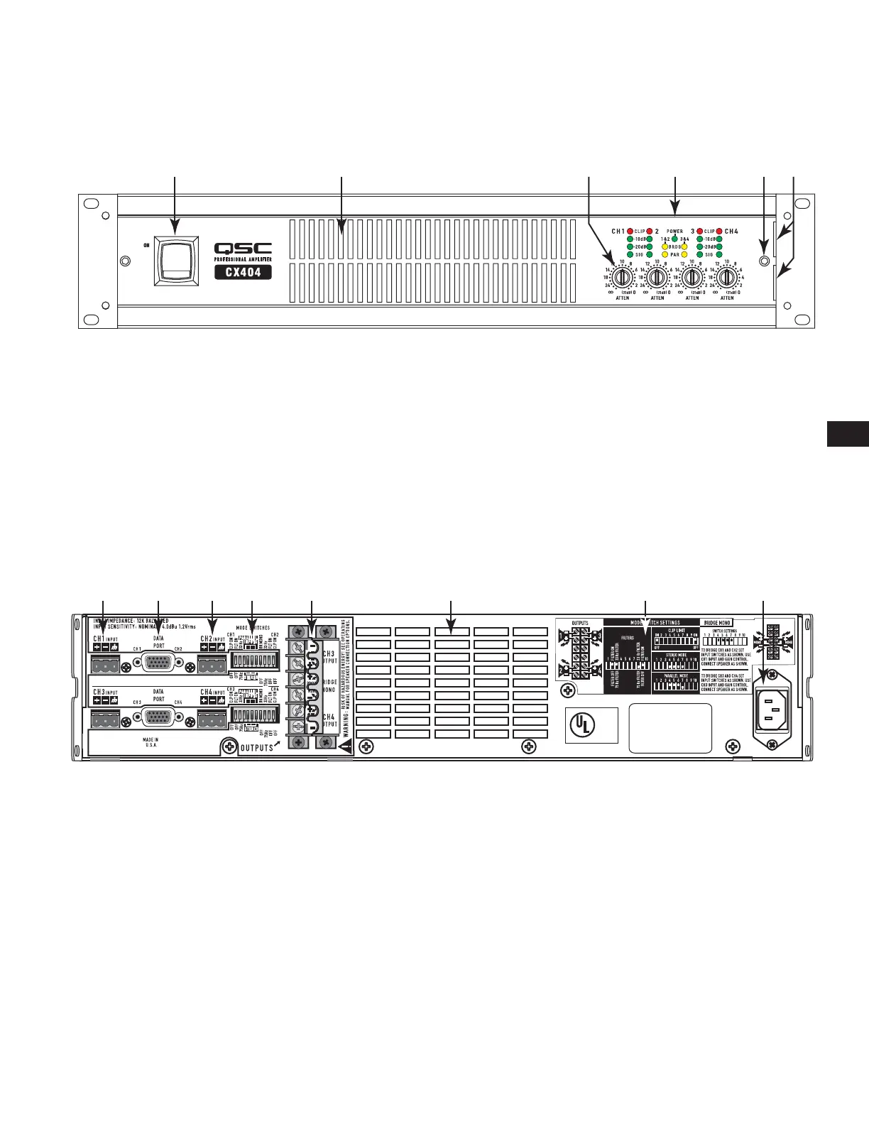 (CX404 shown Figure 2, other models similar, 2-Ch. models equipped with XLR inputs as well)