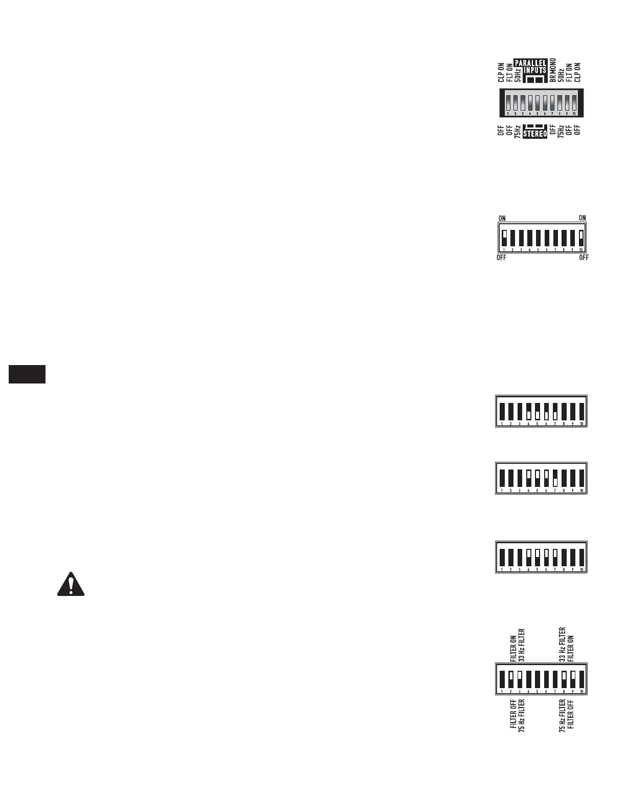 • Mit den Schaltern 2 und 9 wird 33/75 Hz (Low-Z) oder 50/75 Hz („V“-Modelle) oder 75 Hz gewählt.