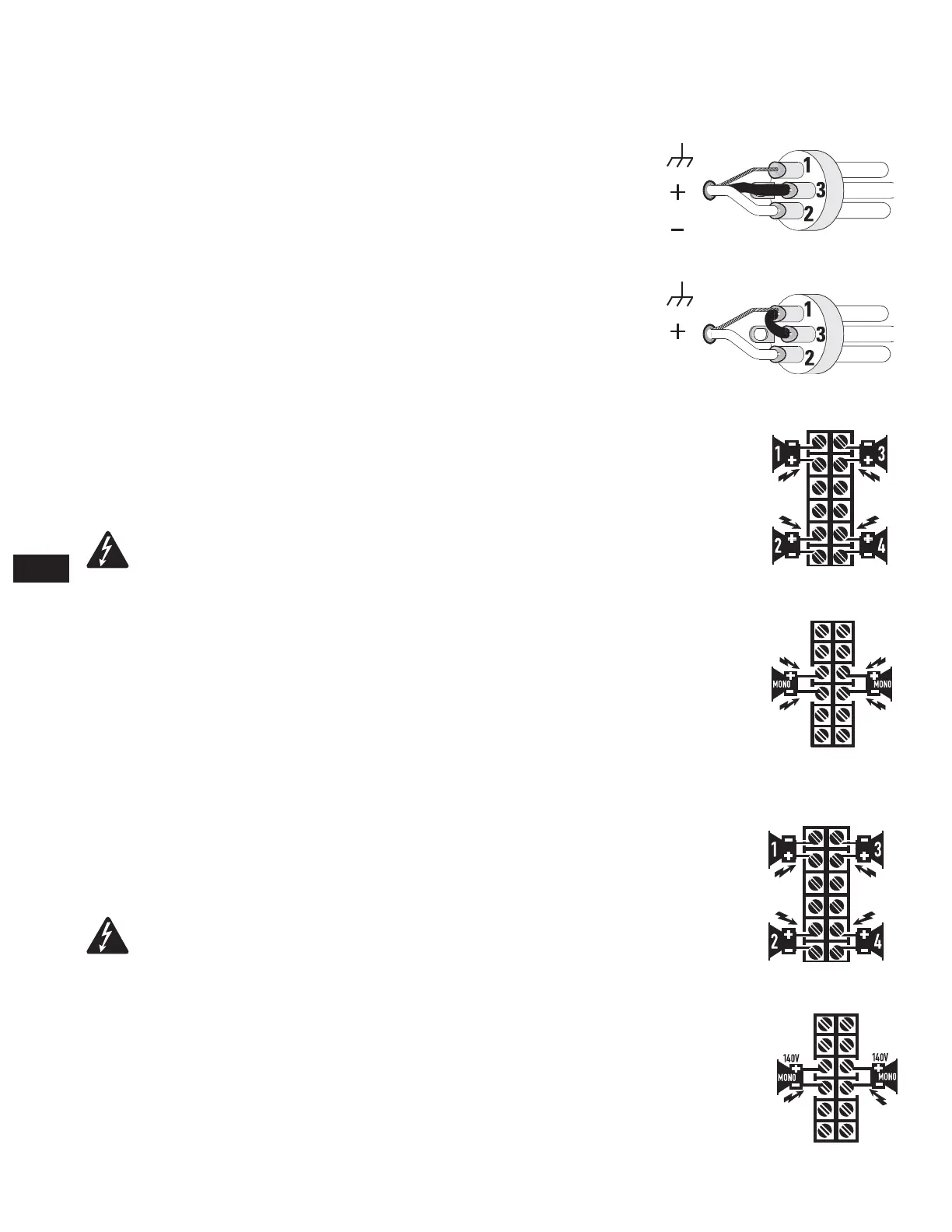 Anschlüsse bei ausgeschaltetem Verstärker vor. Risiko gefährlicher Energien!