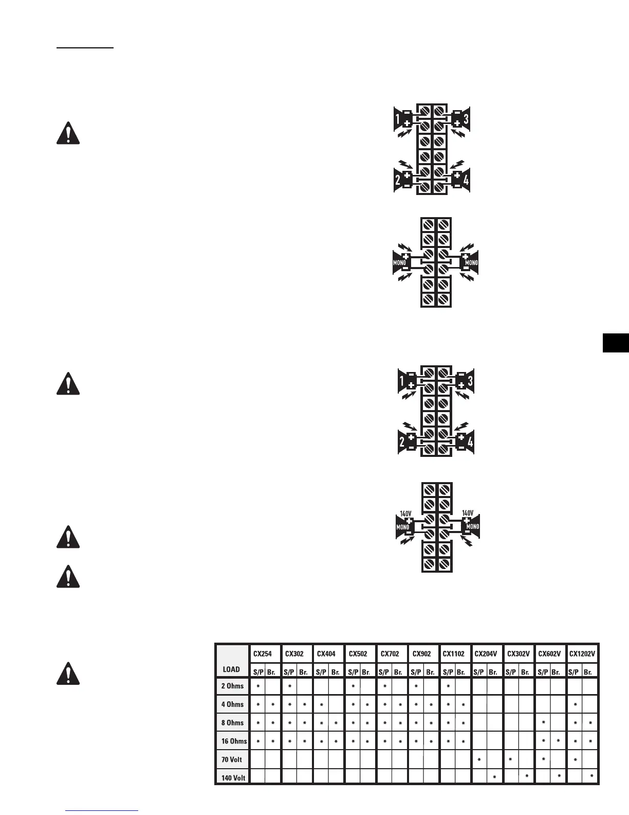 werden. Im Überbrückungsmodus keine 70-V-Lasten verwenden! Verwenden Sie