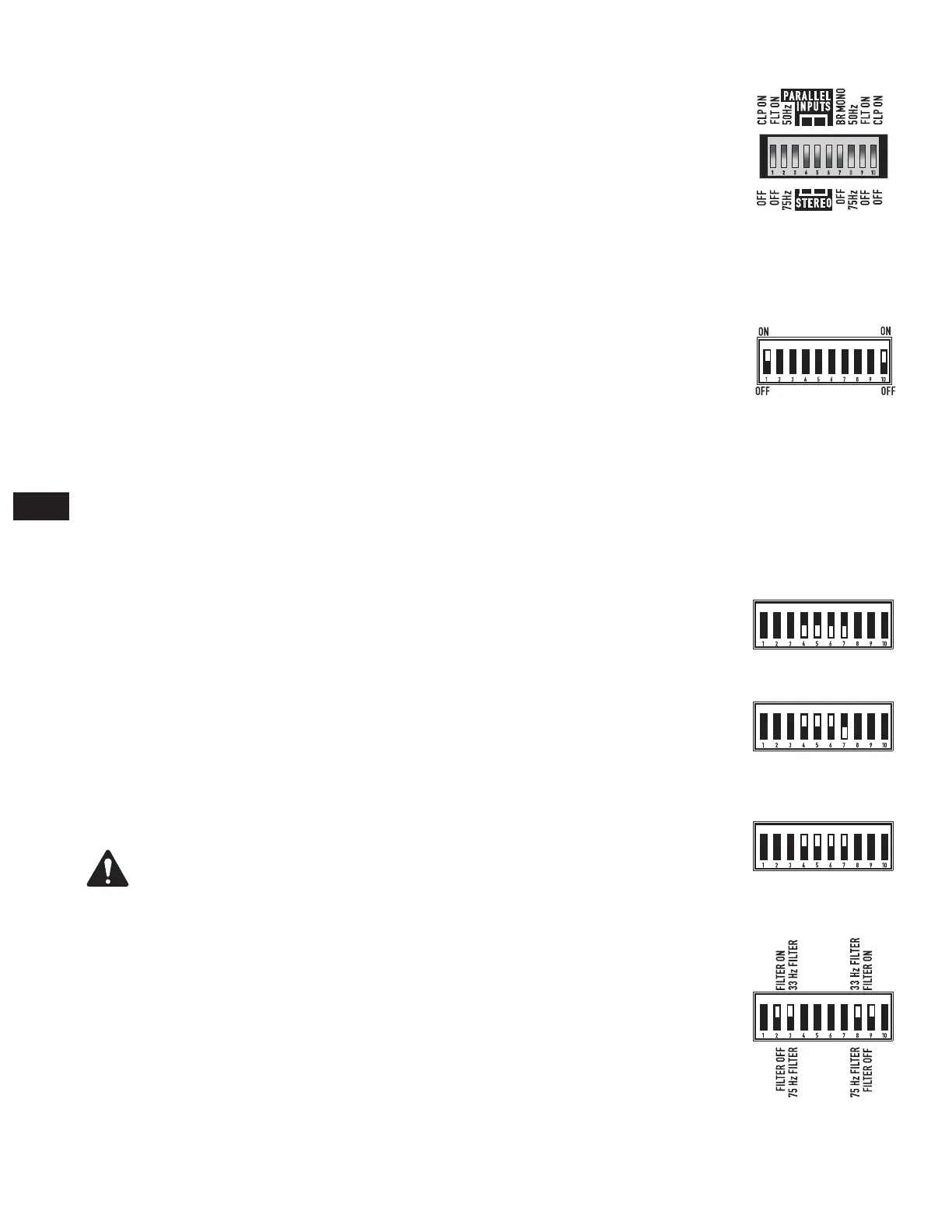 • Los conmutadores 2 y 9 seleccionan 33/75 Hz (baja Z) o 50/75 Hz (modelos “V”) o 75 Hz.