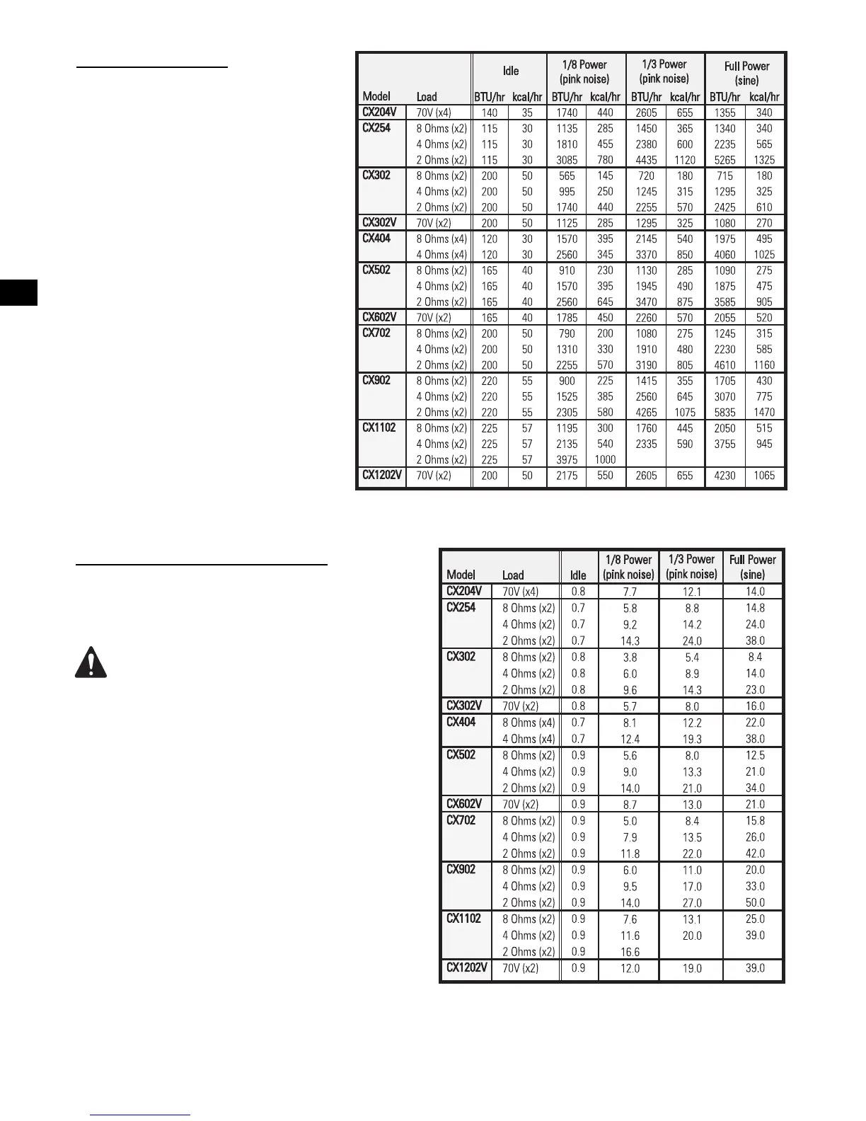 • Full power (sine) is continuous sine wave driven at 1% clipping.