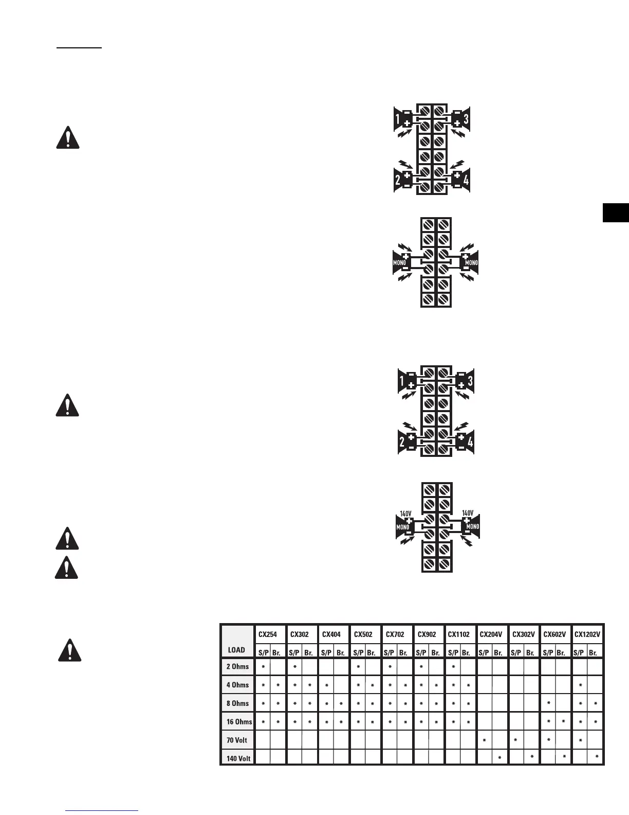 Connect only 140V distributed audio circuits in bridged mode. Do not use 70V