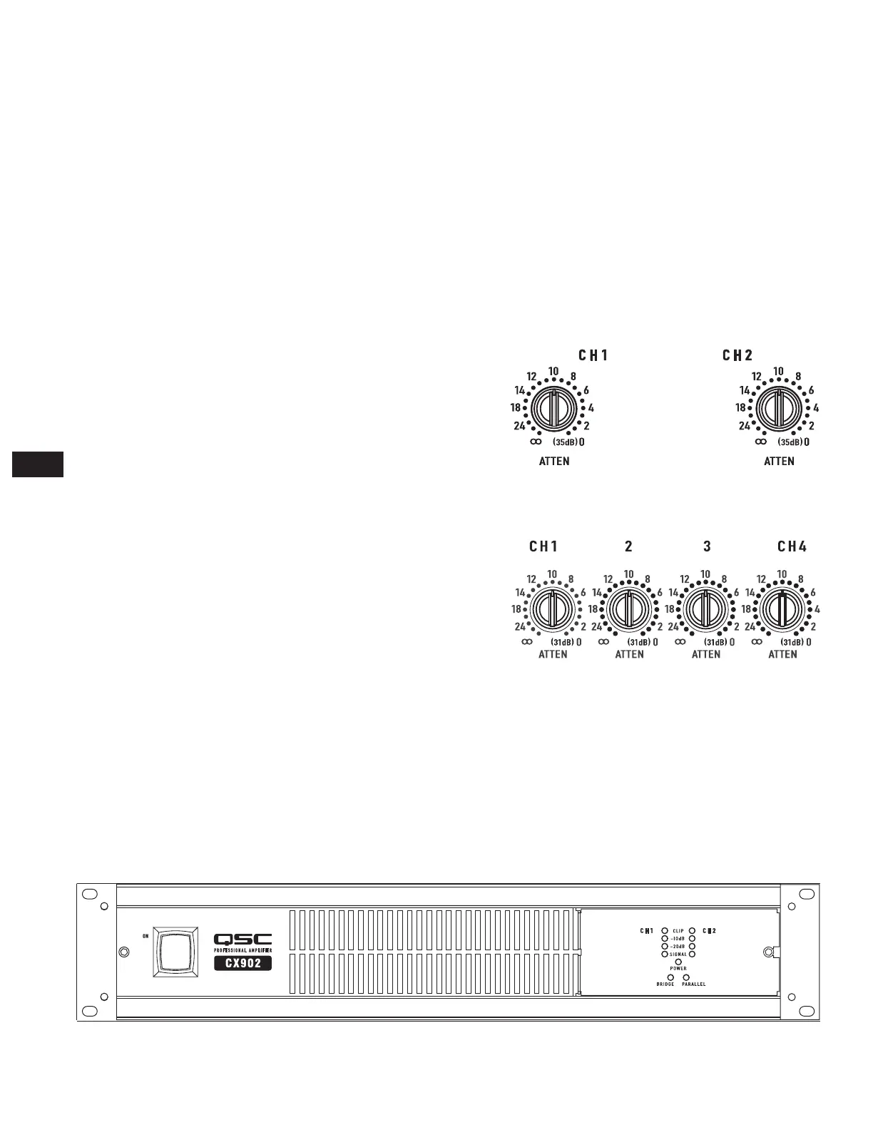 Cada par de canales tiene un LED AMARILLO para el modo de puenteado y un LED ANARANJADO para el modo paralelo. Estos muestran la