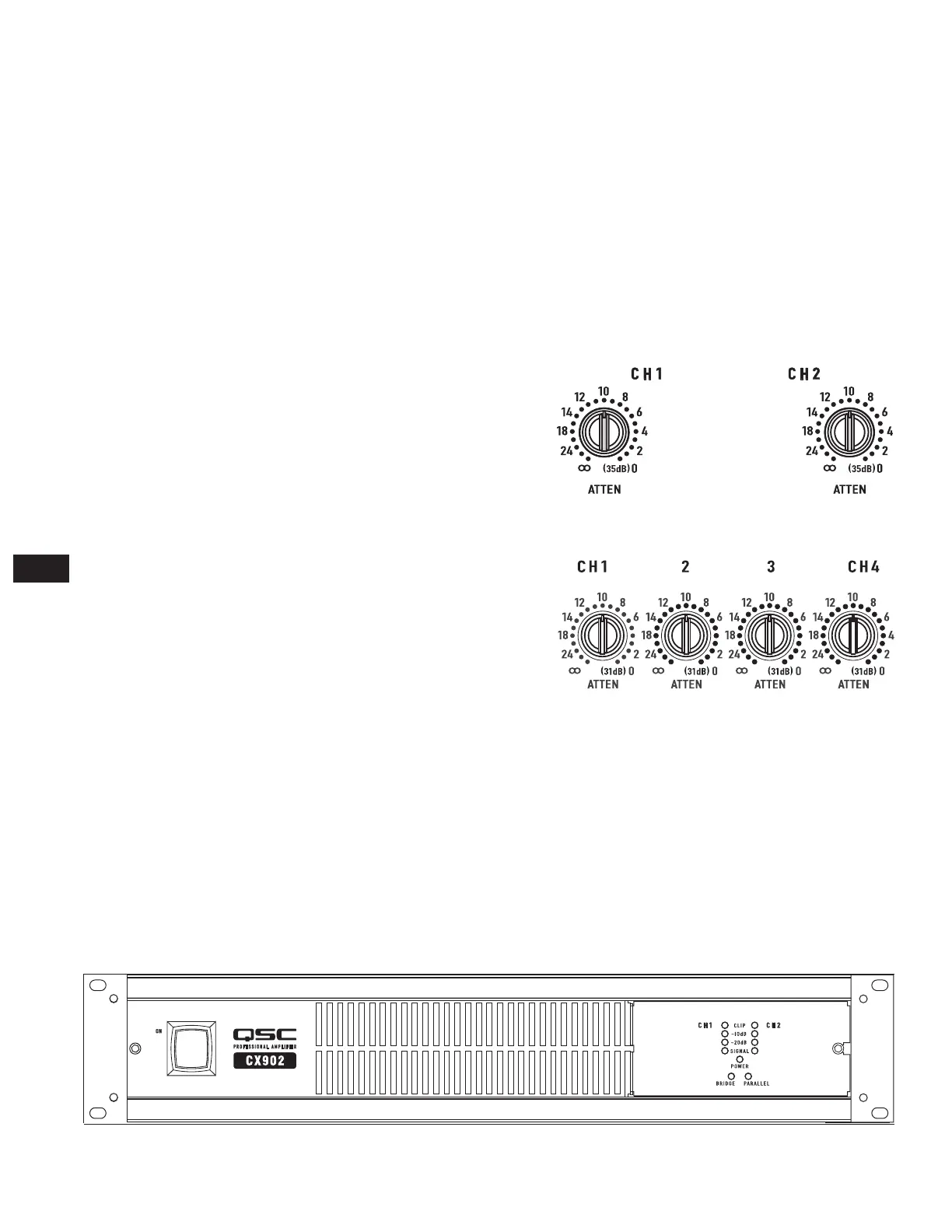 Jedes Kanalpaar hat eine GELBE LED für den Überbrückungsmodus und eine ORANGE LED für den Parallelmodus. Diese zeigen an, wie die Schalter
