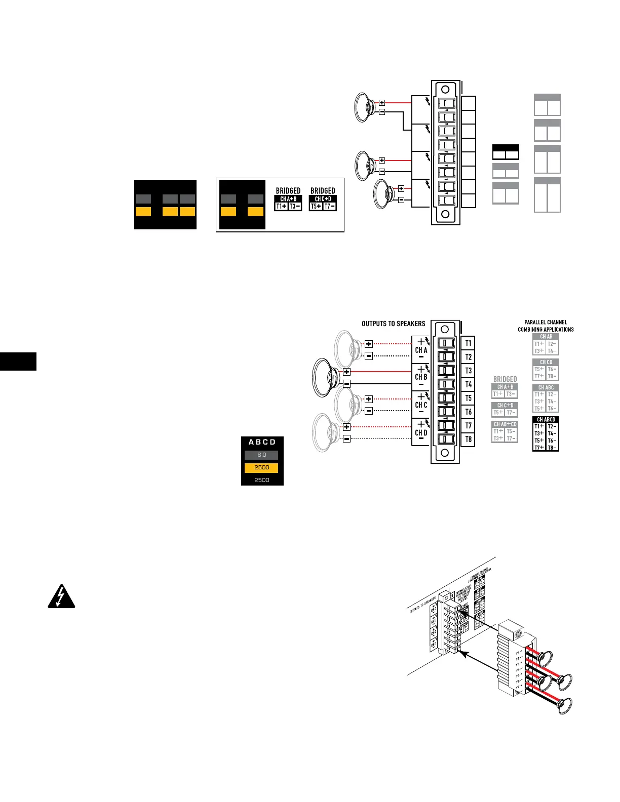 empfiehlt QSC, zwischen den elektrisch gleichen Ausgangsklemmen Steckbrücken anzuschließen.