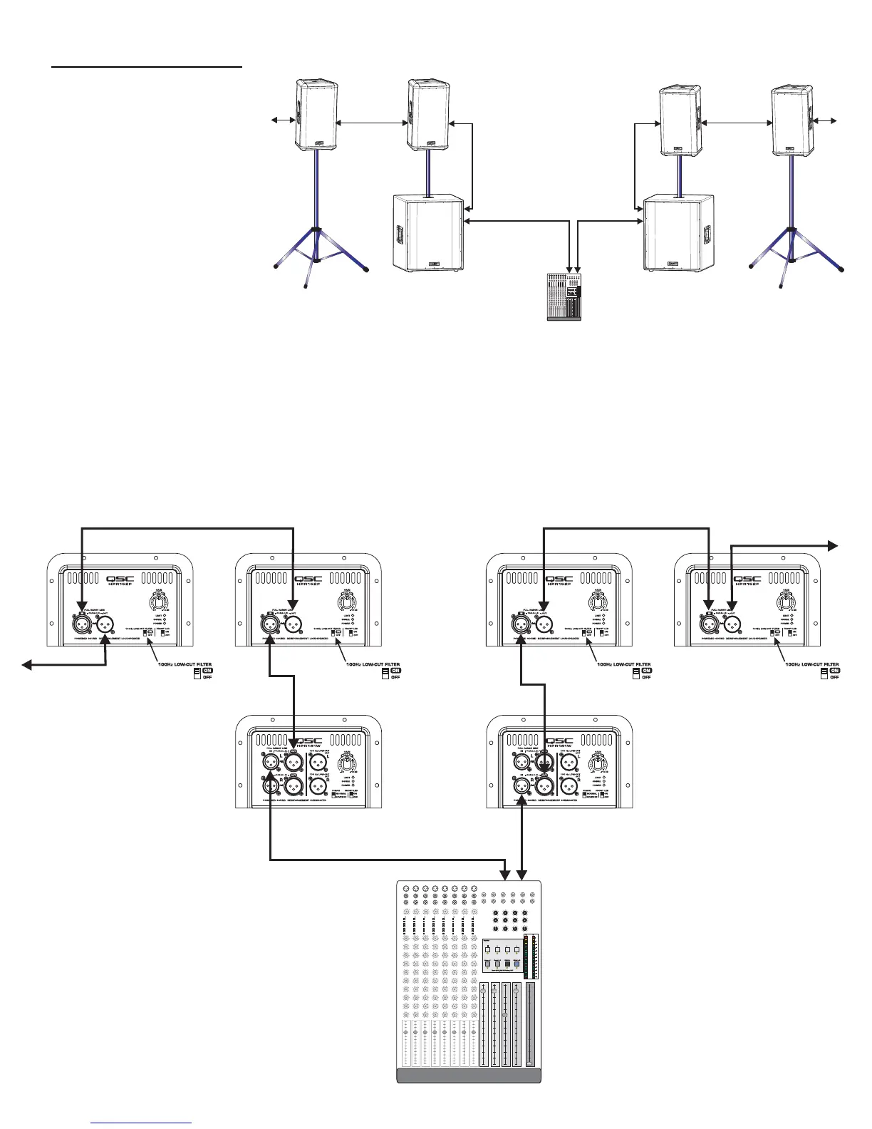 Ensure the top-boxes have their 100 Hz LOW-CUT FILTER switched on when connecting to the subwoofer’s FULL RANGE LINE OUT as a signal source.