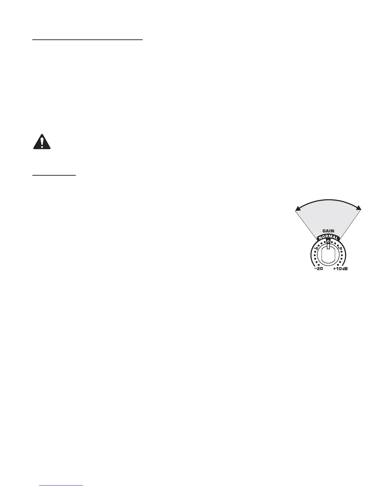 dB and is adjustable from -20dB to +10dB. There are 21 detents for repeatable adjustments. Turn the gain control
