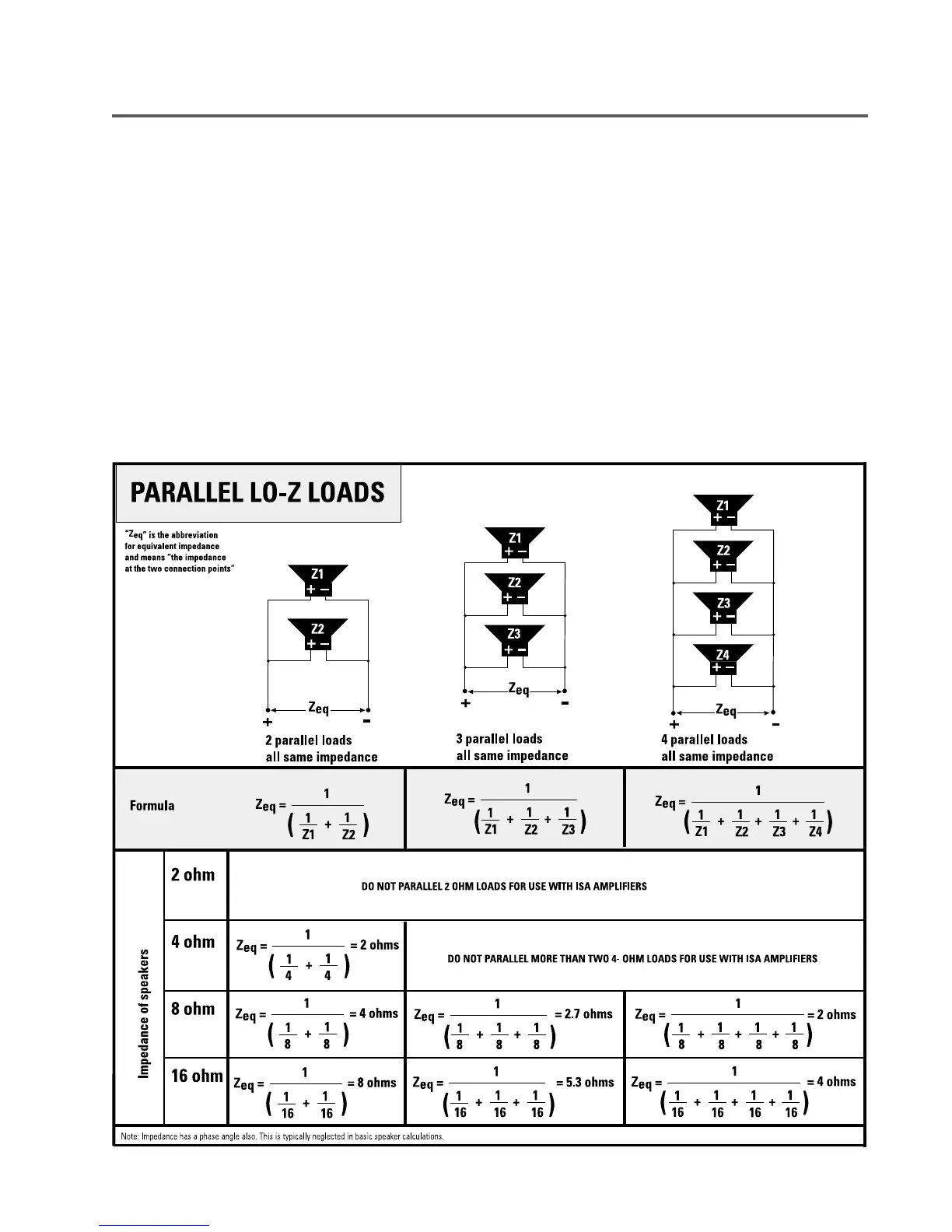 (example: three 8-ohm loads in parallel: 8/3=2.667 or roughly 2.7