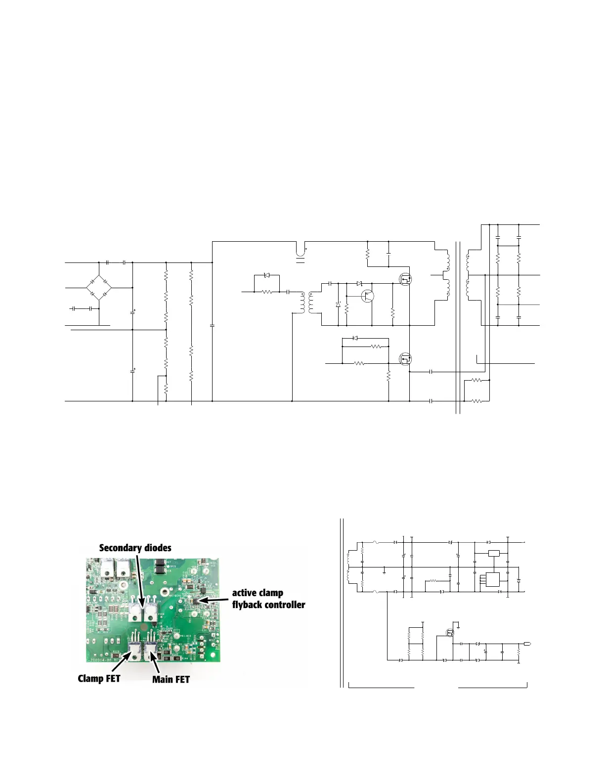 The amplifier module’s switch mode power supply is a regulated, fixed frequency, active clamp flyback. It is similar to a typ-