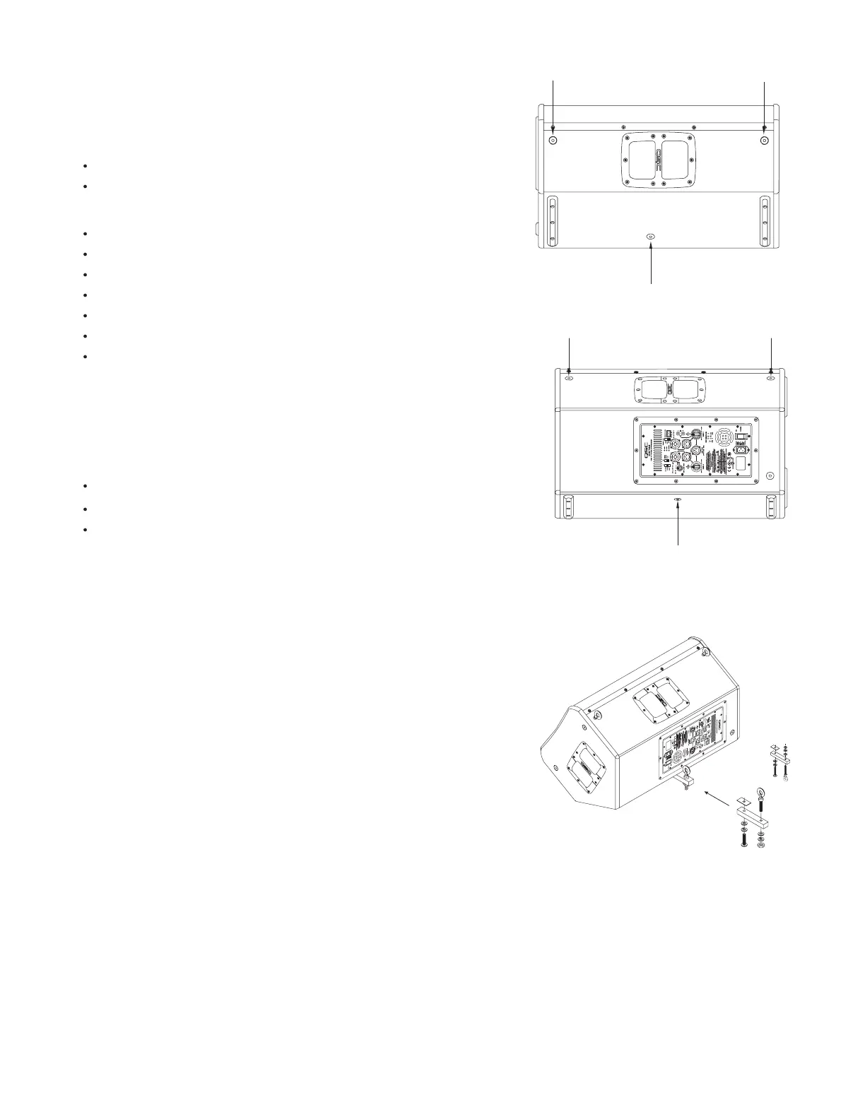 2. Thread one eyebolt into each of the two threaded inserts on the top side of the loudspeaker enclosure. Do not use washers.