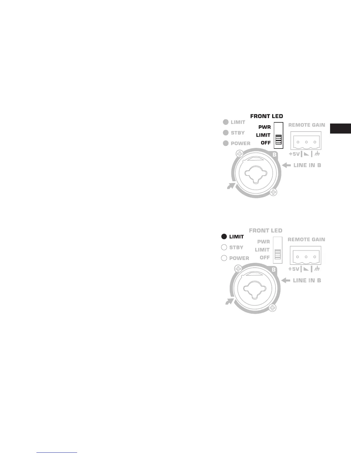 below on the rear LIMIT LED. When not in limiting and when the unit is not in standby, the