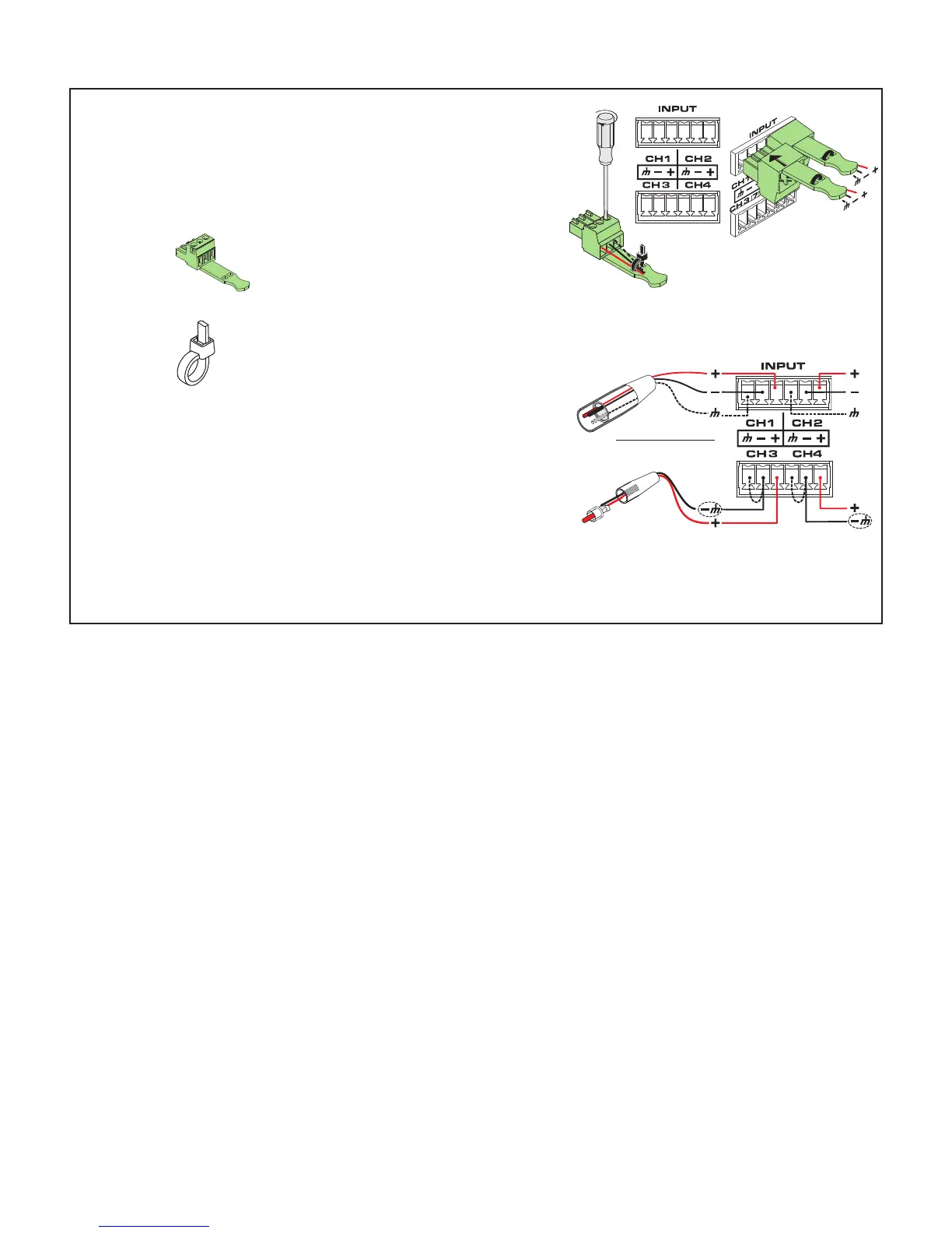 • 3.5 mm Euro, 3-pin (green – one for each Input)