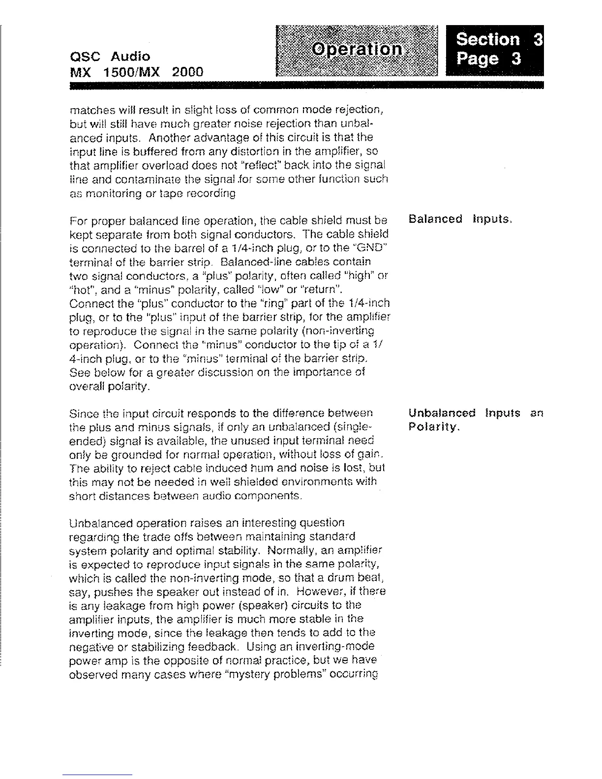 QSC MX 1500 - Balanced Inputs; Unbalanced Inputs an Polarity