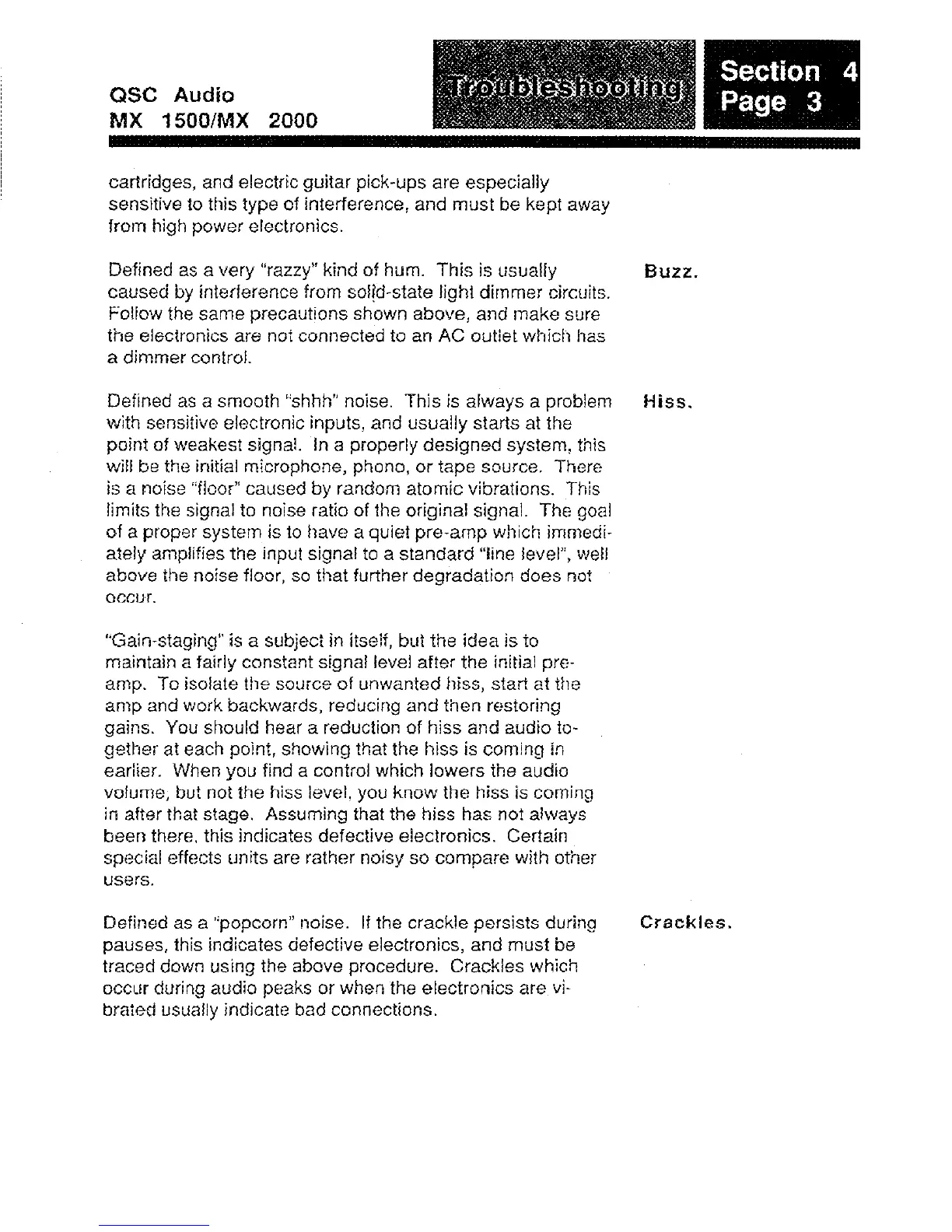 QSC MX 1500 - Buzz; Hiss; Crackles