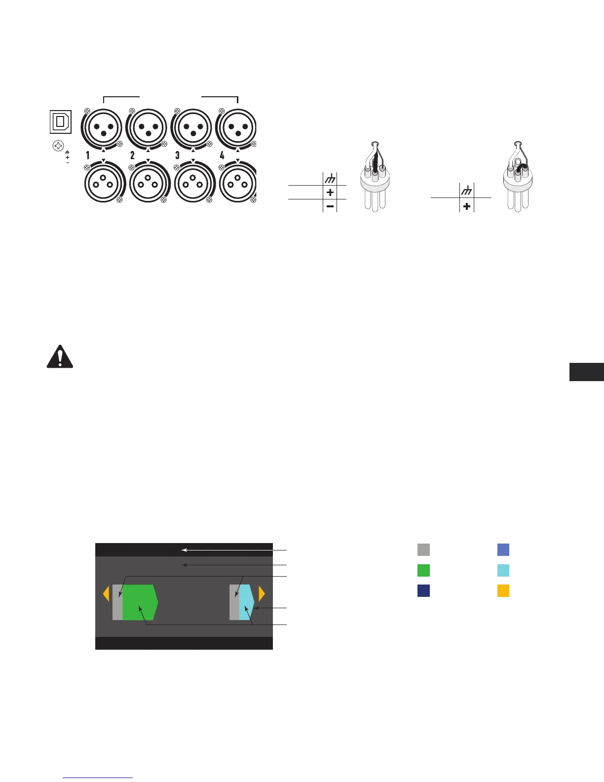四个标签为 1 至 4 的内孔 XLR 连接器为PLD 放大器提供音频输入。单个输入能够路由至一路或输出合成。您可以使用一
