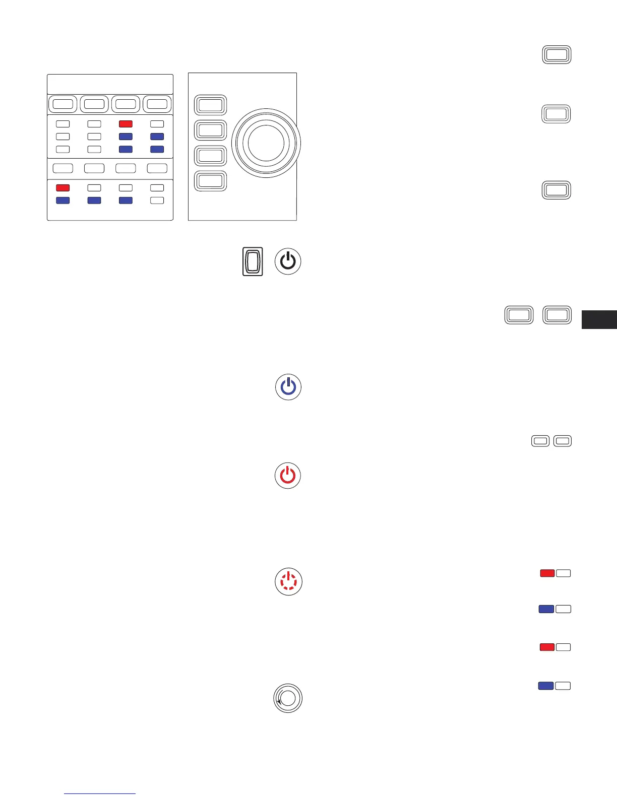 • Los botones SEL se iluminan de color azul para los canales de salida,