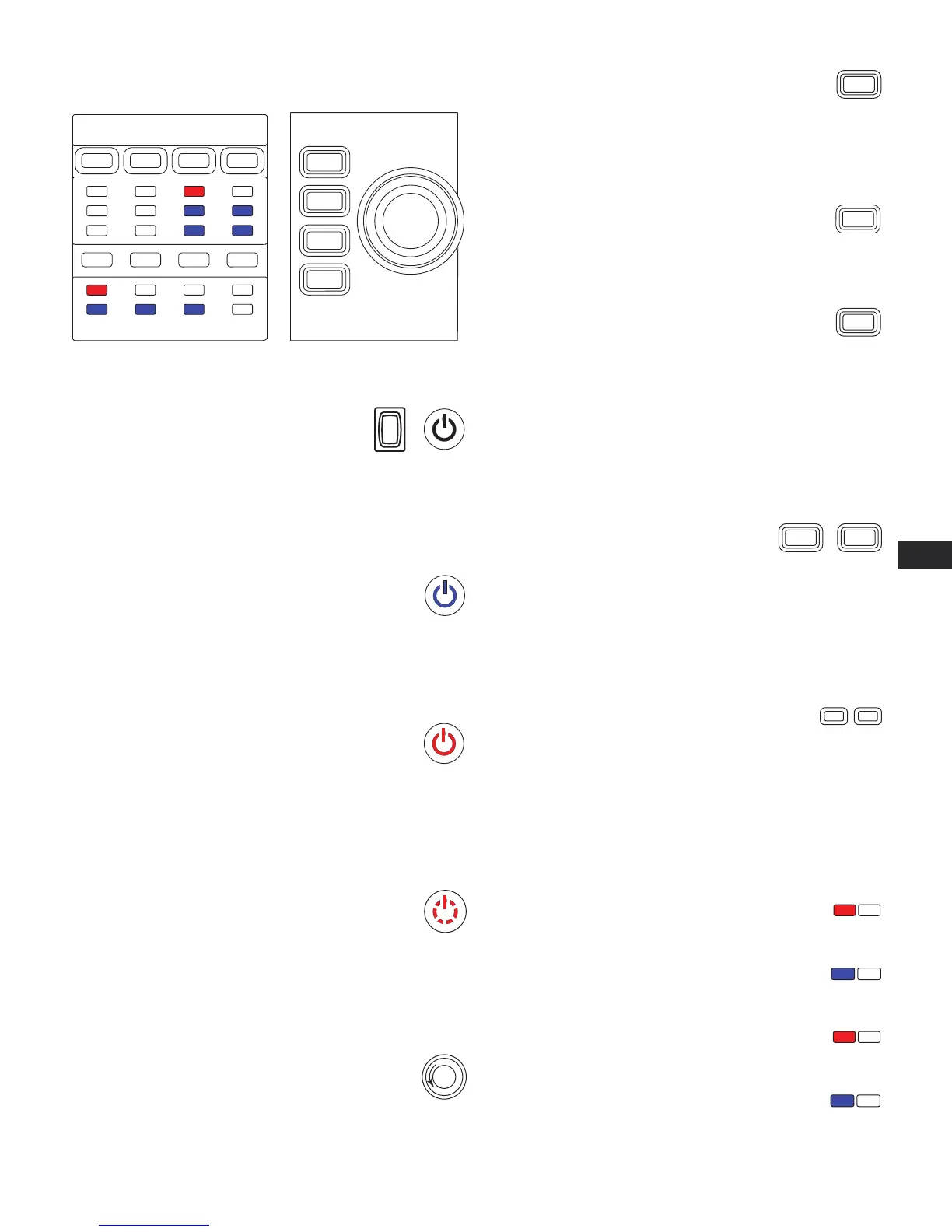 • Die SEL-Tasten leuchten blau für Ausgangskanäle und gelb für