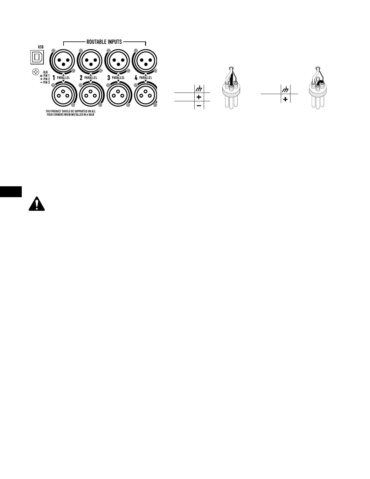 seleccionable de +4 o +14 dBu. Hay cuatro conectores XLR macho en paralelo con los cuatro conectores hembra. Los conectores XLR macho sirven para la conexión