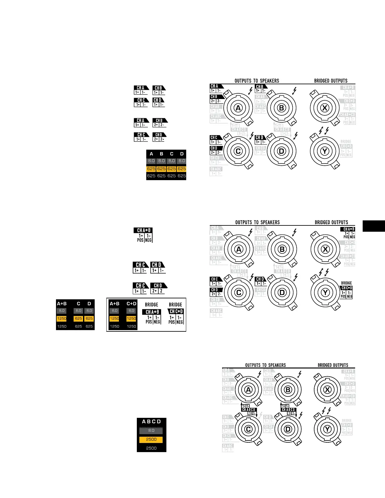 Die PLD-Verstärker haben vier konfigurierbare Ausgänge. Sie können die Leistung festlegen, Ausgänge (überbrückt und parallel) kombinieren und