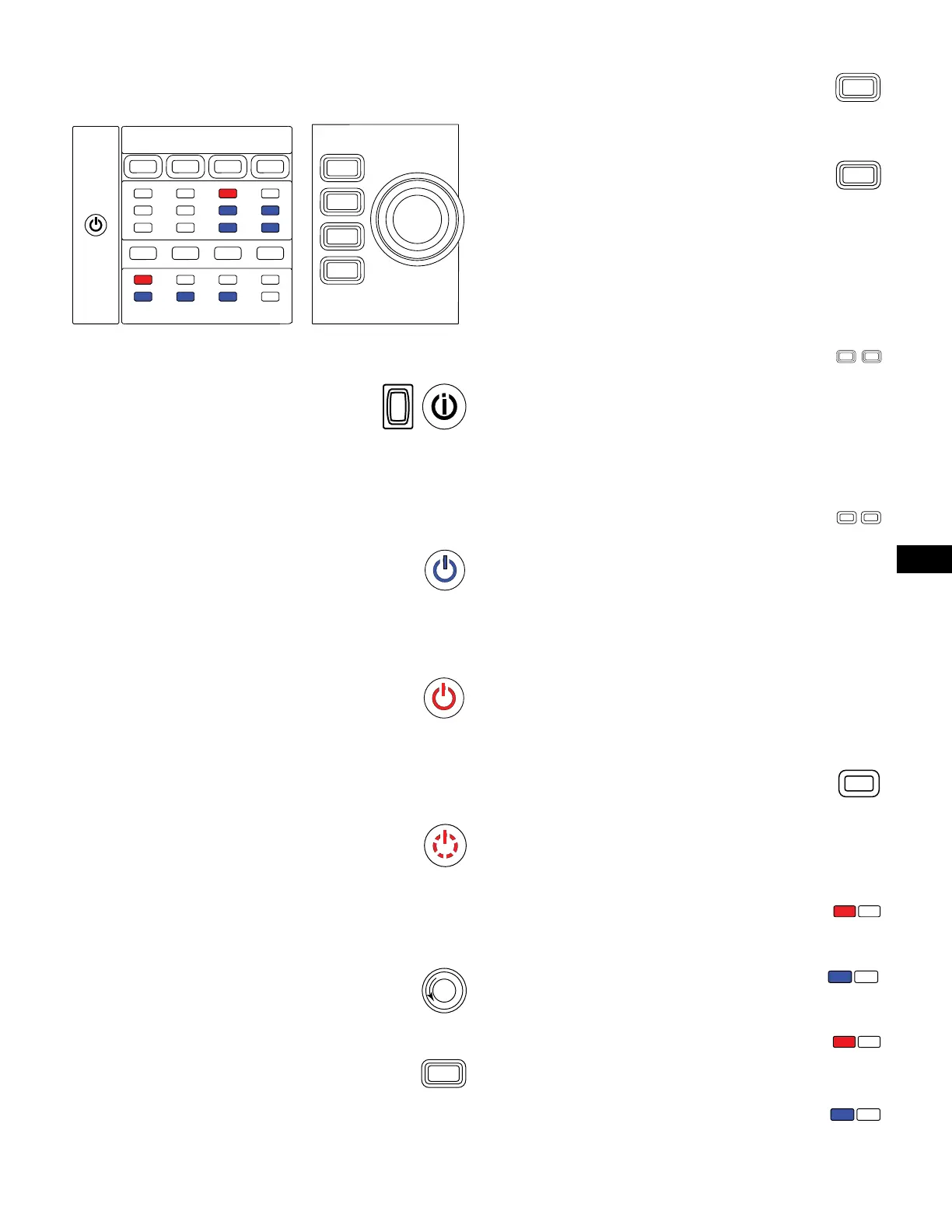 • Die SEL-Tasten leuchten blau für Ausgangskanäle und gelb für Eingangskanäle.