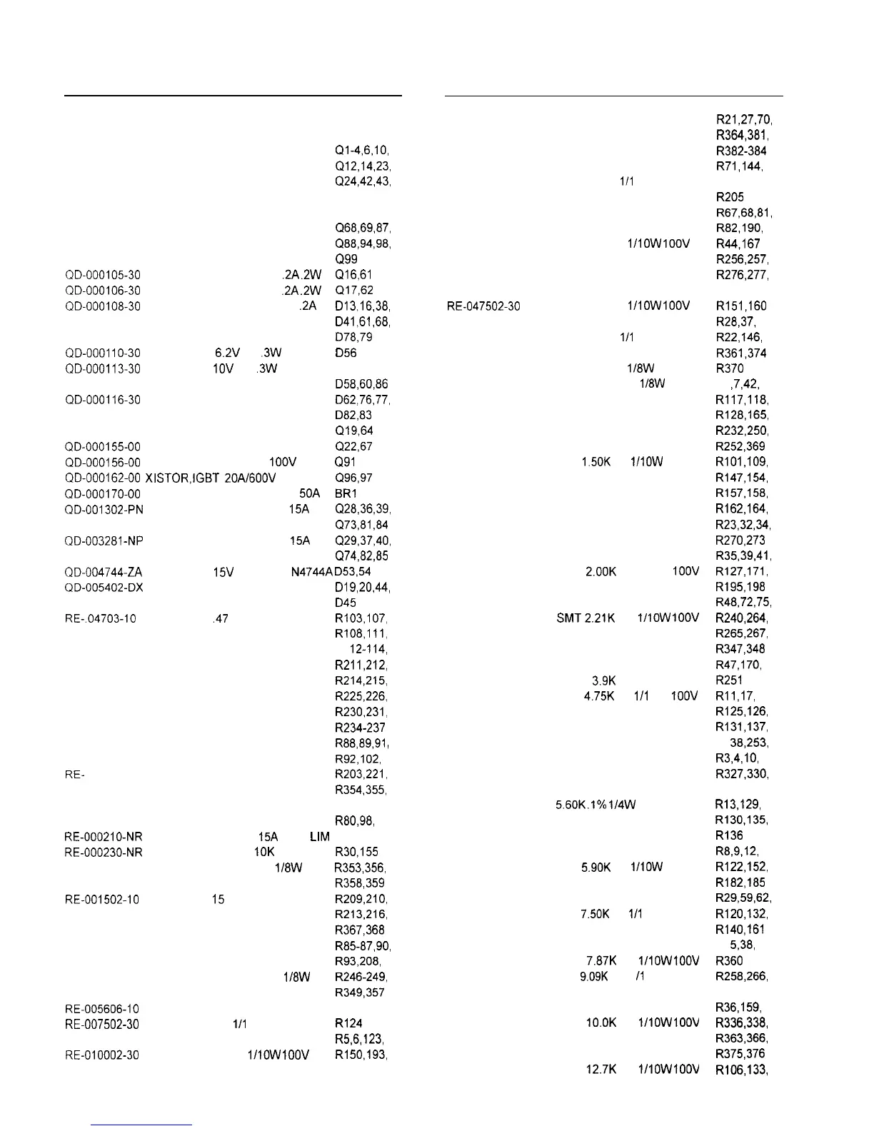 Part Number Description Reference