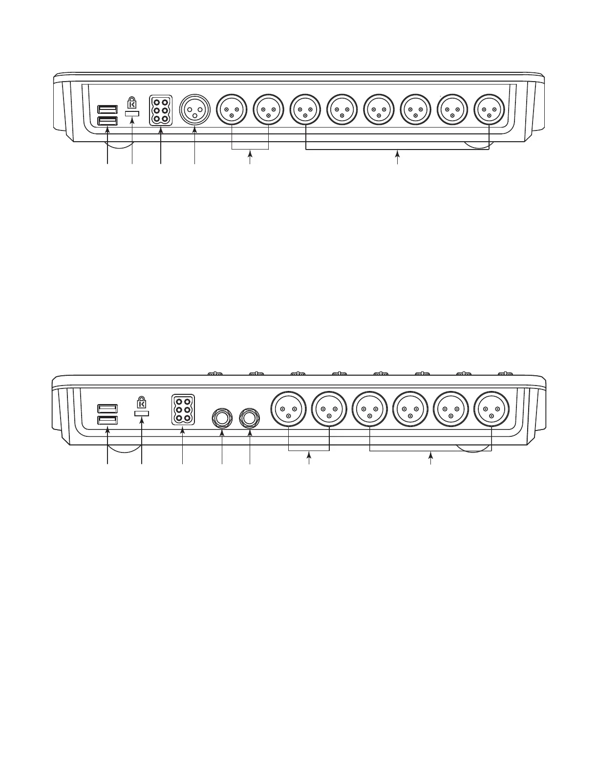 – Stereo 1/4” TRS. Line or in-ear output. This output is wired in parallel with Aux 3 and 4 XLRs.