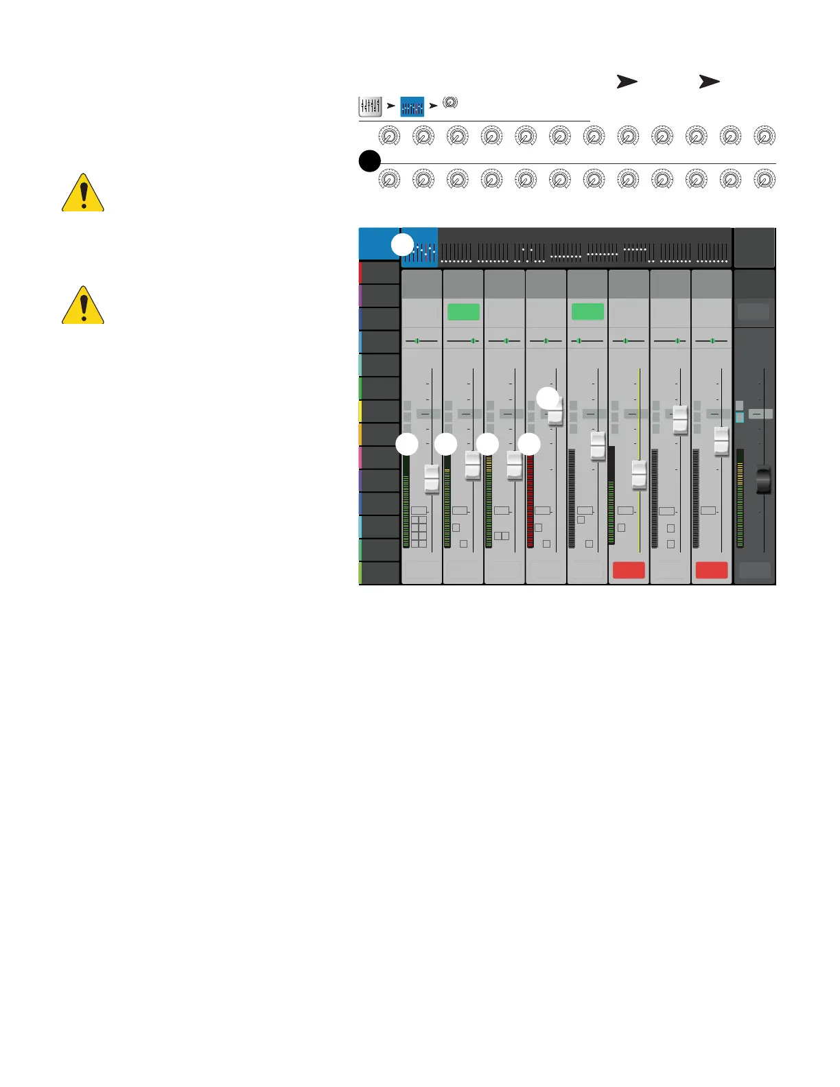 – Adjusts the output of the channel to the Main L/R outputs, post-fader aux. sends, and Sub-Groups