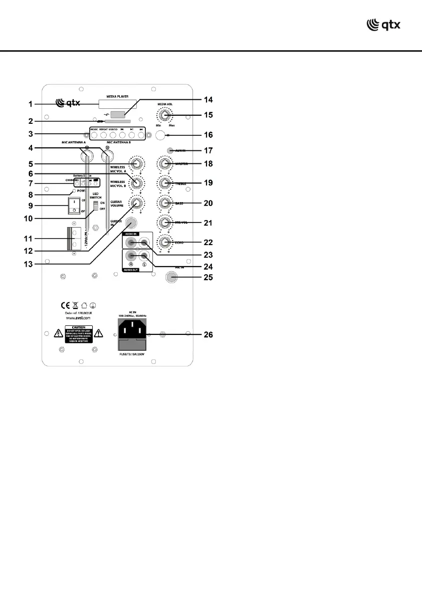 You may otherwise opt to connect the DC input at the rear (11) to an external 12Vdc supply