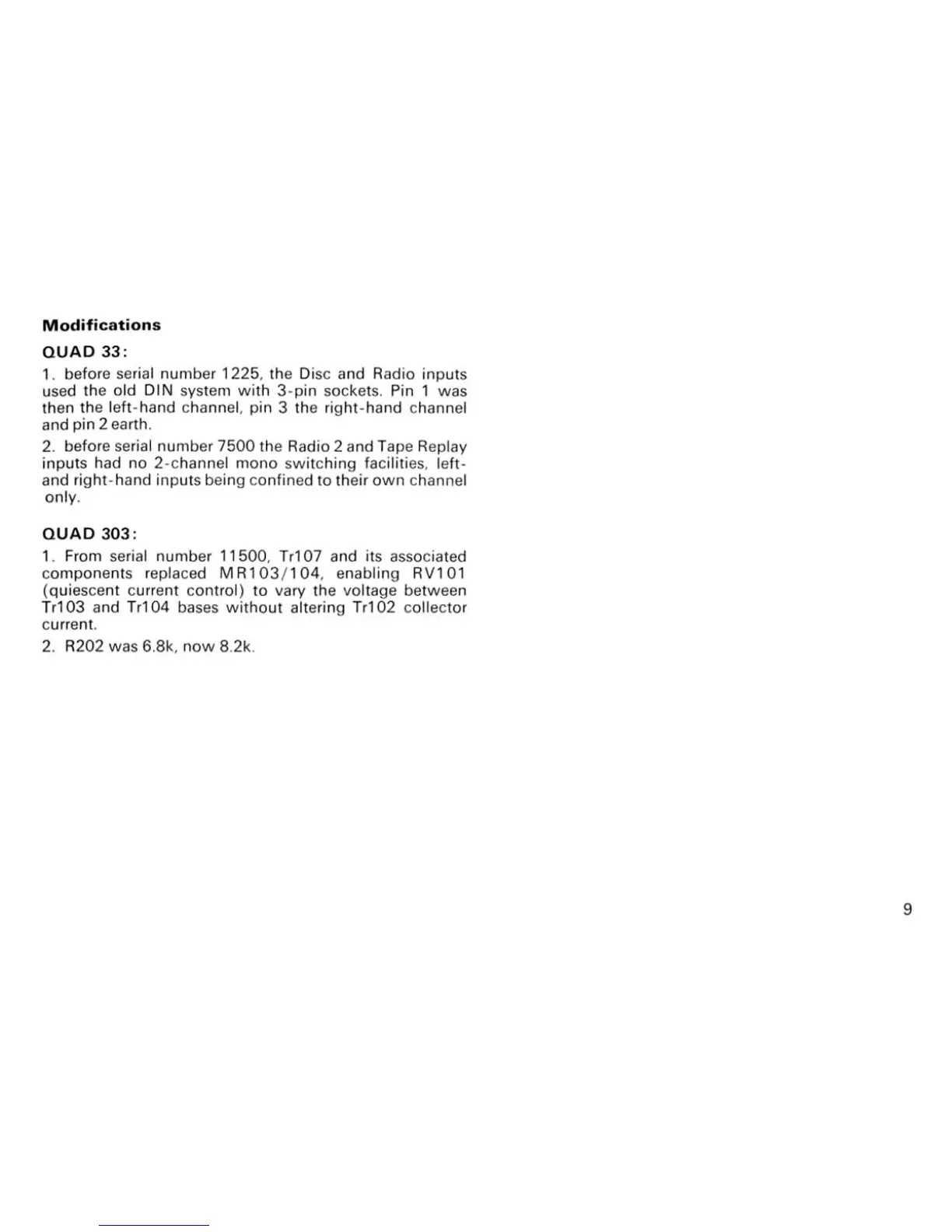 QUAD 303 - Product Modifications; Quad 33 Model Modifications; Quad 303 Model Modifications